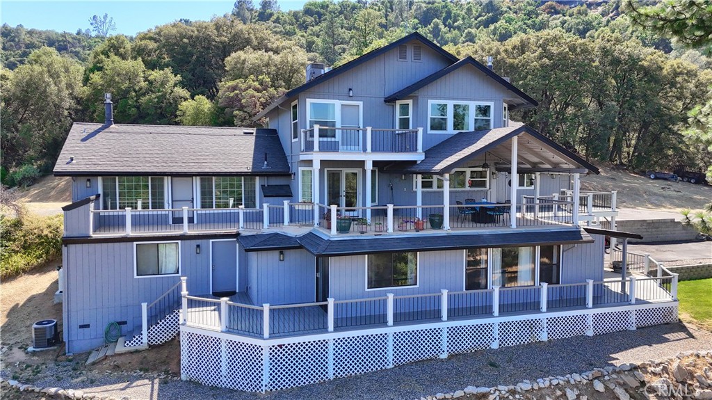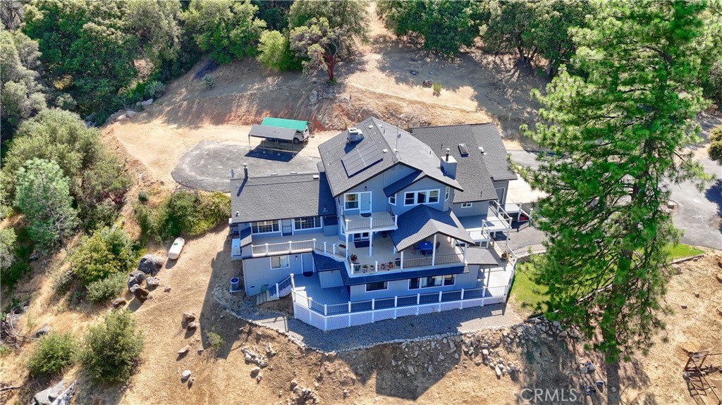 Enjoy breathtaking High Sierra backcountry views from this beautifully remodeled 5,292 sq. ft. home on 14.14 private acres. With 7 bedrooms (1 used as office) and 4.5 baths, this spacious property offers flexible living with a full downstairs suite (Approx. 1200 sq.ft.) featuring 2 bedrooms, 2 baths, full kitchen, and living area complete with separate entrance and a lockable interior door for privacy. Potential Vacation Rental. Upstairs includes 5 bedrooms, 2.5 baths, and a fully updated kitchen with reverse osmosis drinking water, newer appliances, and modern finishes. Recent upgrades include a full interior remodel, newer HVAC system for downstairs, new windows throughout most of home, 100% LED lighting, exterior paint, and Trex-like decking to take in the views. A 10×16 shop, repaved driveway, shared private well, and 30kw commercial generator add practicality and peace of mind. Owned solar keeps energy costs low. Located just minutes from downtown Oakhurst with easy access to Bass Lake and Yosemite, and Chukchansi Casino. A rare blend of comfort, versatility, and mountain living!