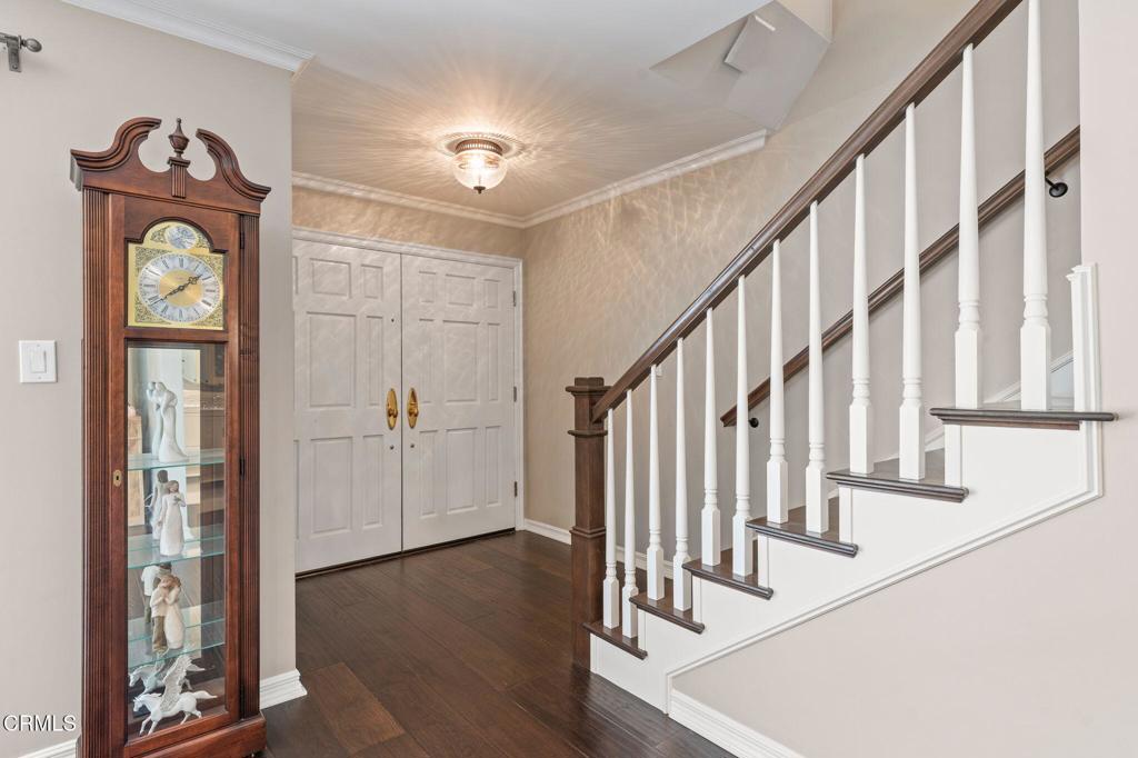 This sophisticated and stylish townhome, located in the heart of Sierra Madre, is set off a quiet side street towards the back of the complex and offers a multitude of serene outdoor spaces. Down a quaint walkway, there is a welcoming patio set off a classic double-door entry that opens to the tastefully updated interior. The entry opens to a bright and spacious living room with crown molding, a charming fireplace and sliding glass doors that open to the front patio. The dining area features a built-in bar with lots of additional storage. The home has a second set of sliding glass doors from the dining area that extend to a second spacious patio area–perfect for indoor-outdoor entertaining. A private two-car garage with epoxy flooring is conveniently accessed through the back patio. The classically upgraded kitchen features sleek quartz countertops, beautiful wood cabinetry and stainless-steel appliances. Throughout the home, there are wonderful features such as wood flooring and recessed lighting. A beautifully renovated powder room completes the main level of the home. Upstairs there are two spacious en-suite bedrooms, both with plantation shutters. The primary suite offers its own fireplace and features a large office nook that presents a lot of versatility with the floor plan. Other features of the primary suite include a wonderfully renovated bathroom, an oversized closet and a charming balcony with lovely city and tree-top views. The second bedroom is also a good size with a full en-suite bathroom. The laundry area is also conveniently located on the second level. This townhome is located within close proximity to restaurants, shopping, parks, hiking trails, and all that Sierra Madre has to offer. Welcome home!