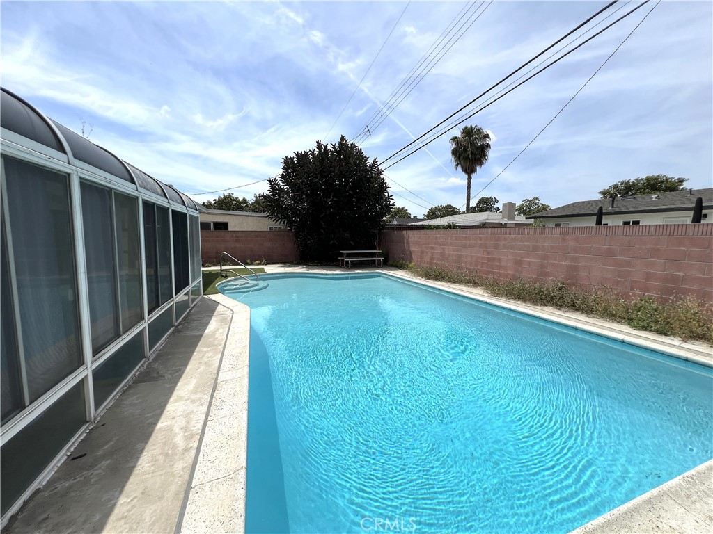 Charming 3 bedroom, 1.5 bathroom single level home located in an established neighborhood of Fullerton. Featuring a 1 car detached garage, this property offers a great opportunity to personalize and create your vision. The home includes a spacious living room with a classic brick fireplace as the focal point, a kitchen and dining combo, and a half bath with laundry hookups. A screened in porch overlooks the swimming pool. Well suited for an investor or owner occupant looking to complete updates and add value. Conveniently located near Downtown Fullerton, California State University, Fullerton, Fullerton College, Hillcrest Park, as well as schools, shopping, dining, and major commuter routes.