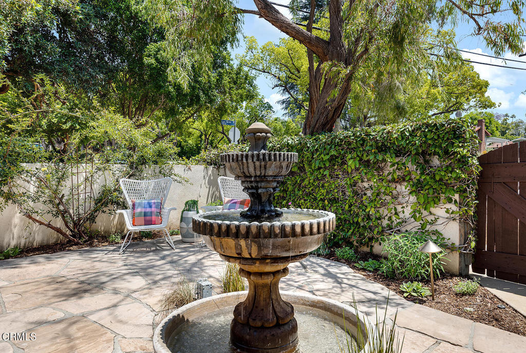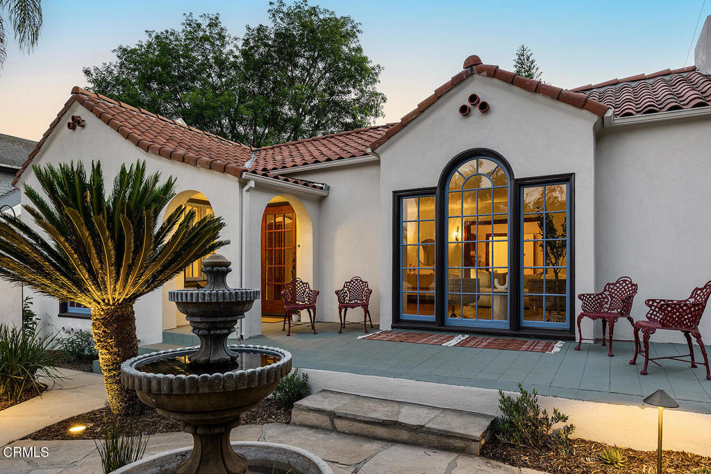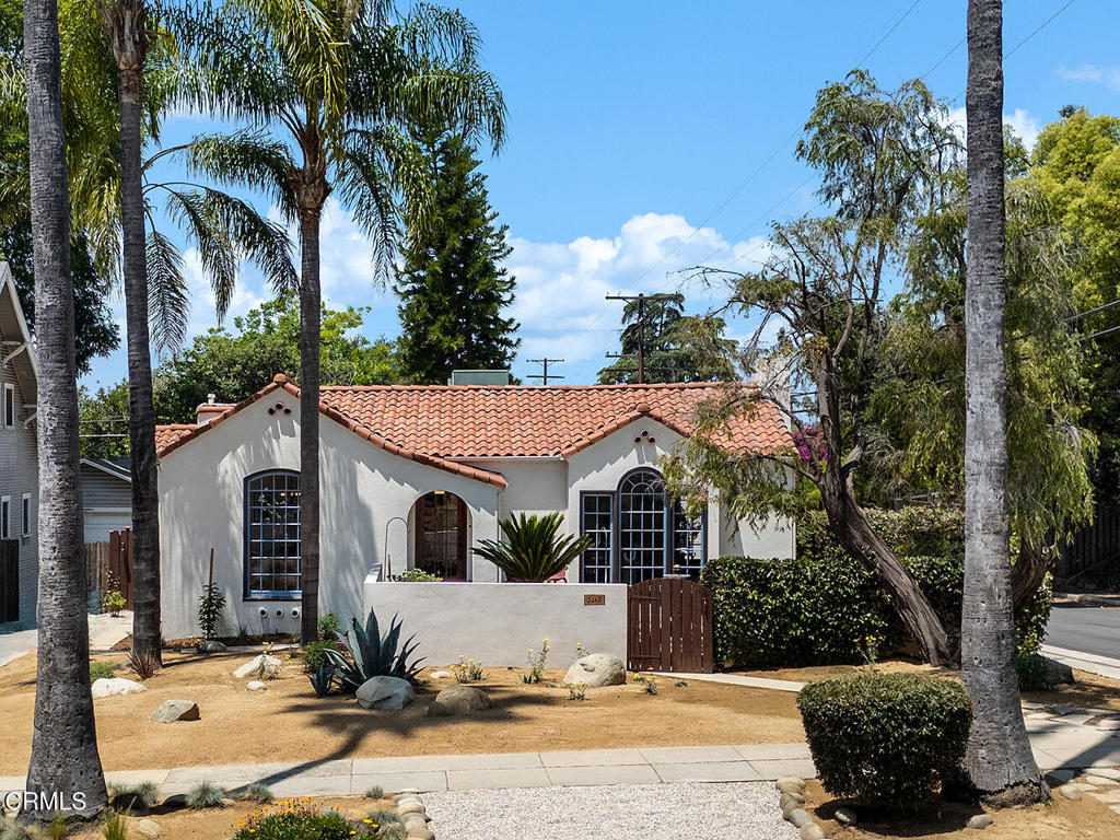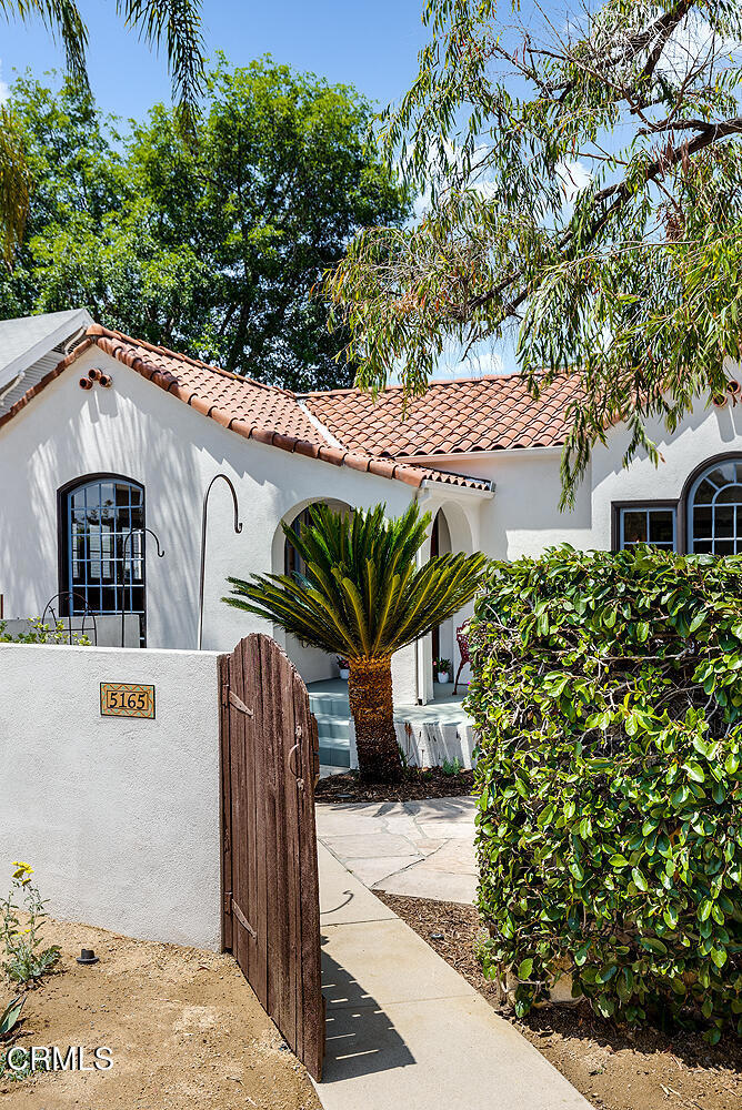 Introducing 5165 La Roda, a meticulous 1924 Spanish home that showcases an era of design and craftsmanship with thoughtful modern upgrades, located in ideal proximity north of Colorado Boulevard in beloved Eagle Rock.This home captures timeless elegance with a welcoming front courtyard with fountain and gardens, leading to the raised front covered entrance. Inside, original wood floors, custom built-ins, mullioned windows, pristine Batchelder fireplace and other period features create warmth and comfort.The front versatile bedroom contains unique built-in secretary with custom trundle bed, creating delightful potential to double as a study, den or guest room. Additional French doors lead to a private side terrace, seamlessly connecting the front and back yards.The gracious formal dining room has original built-in buffet server with leaded glass details and a substantial east window for ample natural light. A swing door leads to the updated, airy kitchen featuring louvered windows, new appliances and new convenient laundry. Additional bedrooms are each well positioned at the rear of the house and offer abundant natural light and charming closet details.Full bathroom has been thoughtfully updated and an all-new convenient powder room offers options for guests.The expansive, flat backyard offers privacy and beauty with surrounding garden and mature trees, with large covered patio perfect for entertaining and grilling.The detached garage is ideally located in rear corner of property and features separate storage/flex space with updated electrical, offering flexibility for a live/work lifestyle. Conveniently located near shops and restaurants in Eagle Rock, Glendale, Highland Park, Pasadena, South Pasadena, Downtown LA, and the iconic Dodger Stadium, this home offers the perfect blend of tranquility and accessibility.