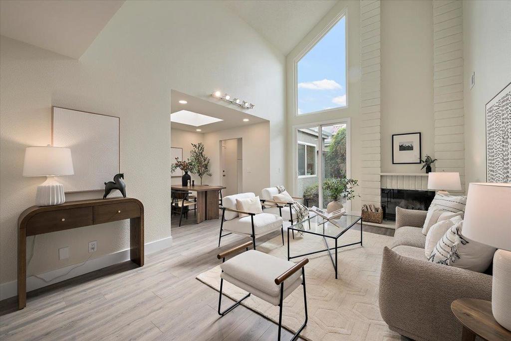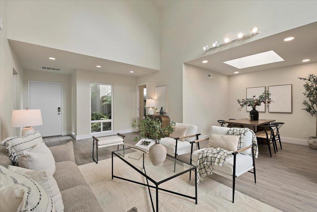 Welcome to this lovely 2-bedroom, 2-bathroom home, in the charming Croydon neighborhood of San Jose. This inviting home offers ample space, including a living room with soaring ceilings, updated chef’s kitchen, bonus office with pull-down Murphy bed, attached 2-car garage, and new laminate flooring throughout. The kitchen features a gas cooktop and range, plentiful countertop space and cabinet storage, and a French-door refrigerator and freezer. Enjoy your meals in the dining area adjacent to the kitchen, illuminated by a large skylight. The elegant multi-purpose living room provides opportunities for entertainment and enjoyment. With central heat and AC, the home is ready for all seasons. The primary bedroom suite features dual closets, updated vanity, and easy access to the home’s private outdoor patio. Down the hall, the secondary bedroom is generously sized and well-lit. A full-size washer and dryer are conveniently located adjacent. The well-maintained community features a large shared pool, clubhouse, and lounge. Don’t miss the opportunity to make this San Jose gem your own!