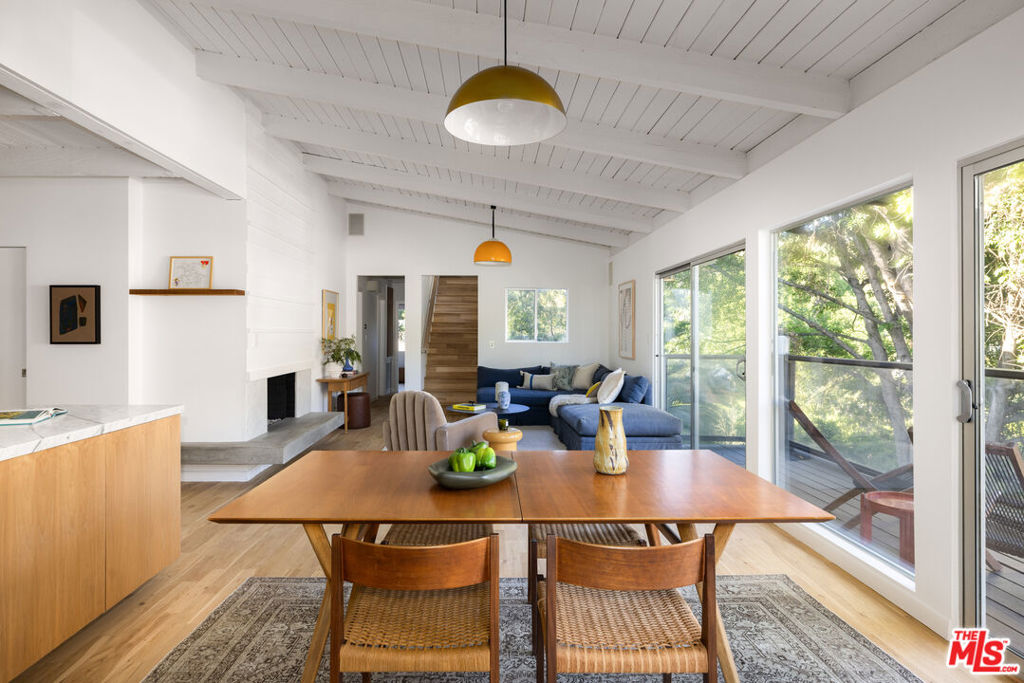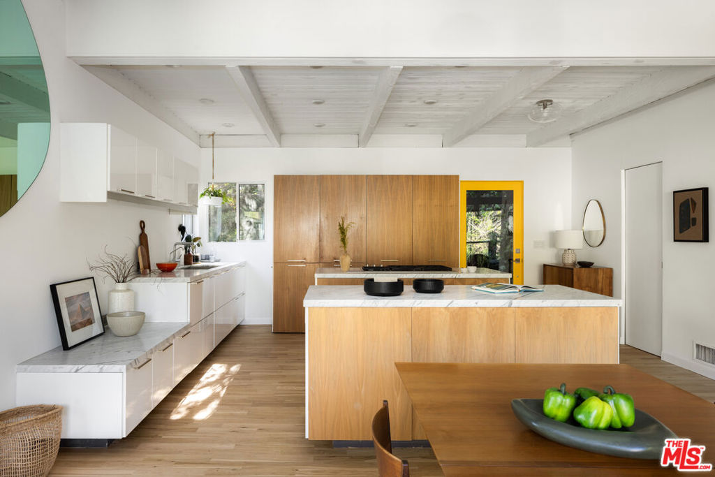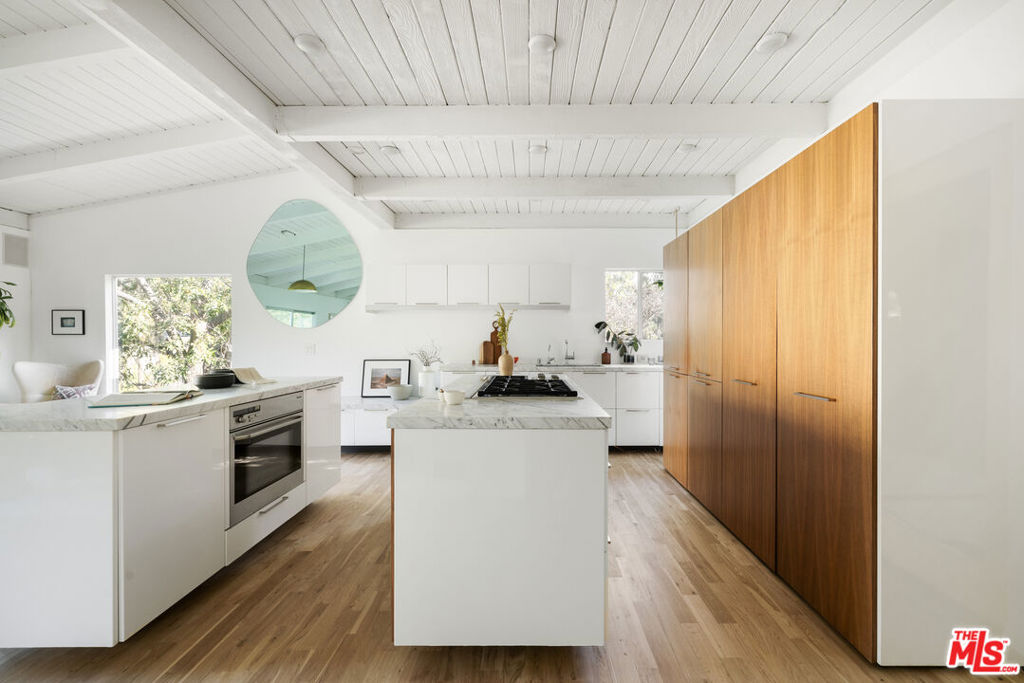 Modern Mid-century tree house in prime Los Feliz Oaks. Tucked away at the top of a long private drive, this 1955 Post & Beam blends classic architecture with thoughtful modern design. Featuring stunning hardwood floors, walls of glass, and tranquil canyon views. Dual-island kitchen with statuary marble, custom walnut cabinetry, and Wolf/Miele appliances. Main level offers two bedrooms and full bath + powder. Upstairs is your private primary suite with sun deck, spa-like bath, and walk-in closet. Bonus room with separate entryideal for studio, office, or storage. Fire pit courtyard and outdoor dining gives you everything you could want. Moments to Franklin Village + Griffith Park and more. Peace and quiet in the city.
