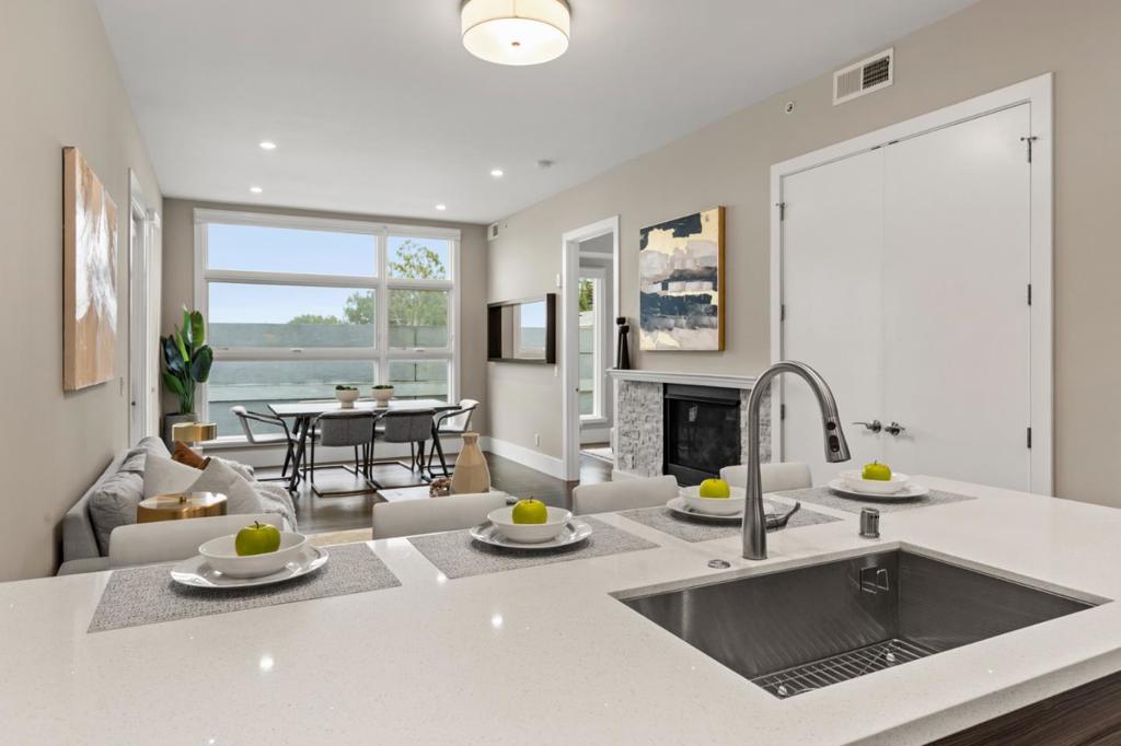 Welcome to Unit 315 at 600 El Camino Real, a beautifully maintained top-floor 1-bedroom, 1-bathroom condo nestled in the heart of Belmont. This quiet, light-filled unit offers a rare blend of comfort, privacy, and convenience. The open concept living and dining area features a cozy fireplace and flows seamlessly to a private balcony, ideal for relaxing or entertaining. The kitchen is equipped with stainless steel appliances, quartz countertops, and a breakfast bar. The spacious bedroom includes two closets and easy access to the updated bathroom. Modern comforts include central heat & A/C, in-unit washer and dryer, and secured garage parking. Community amenities feature bike storage, a shared patio with fire pit and BBQ, and lush landscaped grounds. All this in a prime location, just steps to shopping, dining, and Caltrain, with quick access to Highways 101 and 280 making it perfect for Bay Area commuters. Don’t miss this top-floor gem in the heart of Belmont!