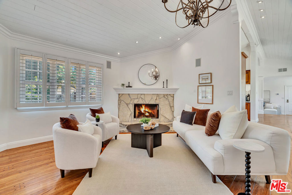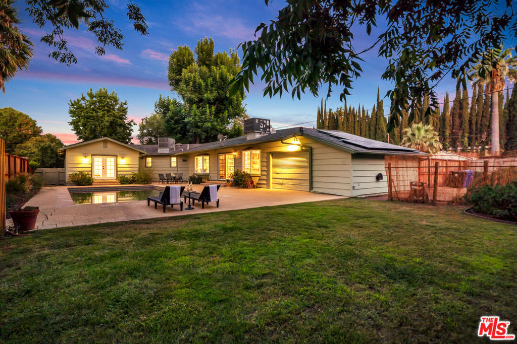 Welcome to a crown jewel of College Acres, Woodland Hills, a breathtaking ranch-style pool home in the iconic CANDY CANE LANE neighborhood! Set on a sunny, flat, more than a quarter-acre corner lot, this stunning 3BR + 3BA residence, WITH SOLAR, offers the ideal blend of charm, function, and potential. With 2,244 ft (apx) of living space, this turnkey home features an attached, pass-through two-car garage, making it a prime opportunity for a Junior ADU (Accessory Dwelling Unit) conversion. Expansive front and back yards, along with a generous side yard, are also ideal for a full ADU or home expansion. Step inside and enjoy an inviting sitting room with a cozy fireplace, a dining area framed by elegant bay windows, and an updated kitchen featuring stainless steel appliances, quartz countertops, and an open-concept island that seamlessly connects to the light-filled living room. The spacious primary suite features a massive walk-in closet and a spa-like en-suite bathroom, complete with a Jacuzzi-style tub, a separate shower with frameless glass, and luxurious travertine and slate finishes. Additional upgrades and highlights include a saltwater pool, RV parking, copper plumbing, hardwood floors, smooth ceilings, and recessed lighting. The seller-owned solar panels will reduce electricity costs along with the Milgard windows and Basswood shutters. Low-water gardens allow for beauty without a high water bill. Fantastic photos, aerial video, and immersive 3D tour are available on the property website.
