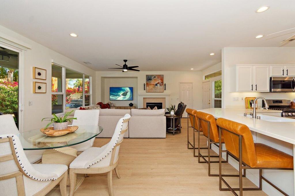 Price Reduced to $529,000!Stunning 2 bedroom, 2 bath Oasis plan in La Quinta 55+ Community Welcome to this beautifully updated and meticulously maintained 2-bedroom, 2-bathroom Oasis floor plan, offering 1551 sq. ft. of light filled space. Recently redesigned with paint inside and out, luxury vinyl flooring and designer carpet, California Closets Cabinets, new hardware and professionally designed front yard landscaping. This home features a spacious great room with cozy gas fireplace, perfect for chilly winter nights. The gorgeous, designer furniture adds a touch of elegance to the home, while creating a consistent desert feel throughout the home. The chef’s kitchen is a standout, complete with stainless appliances, a large island, spacious pantry, and breakfast bar. It opens to a large dining area ideal for entertaining friends and family. The separate laundry room comes equipped with a front load washer and dryer for added convenience. The luxurious primary suite features a walk-in closet, dual vanities, a spacious walk -in shower, and direct access to the patio. The second bedroom offers stunning south mountain views, custom built-in storage cabinets, and a desk for functional workspace if needed. Ceiling fans are installed throughout the home, providing comfort in every room. Addition highlights include a vanishing screen door, nearly new blinds, and automatic blinds in the great room and primary suite. Looking for privacy? Step outside to the extended covered patio, perfect for entertaining, and enjoy the lushly landscaped, private backyard featuring plenty of grass and palm trees, along with a BBQ area. It’s a perfect yard for pets too! This incredible home is priced to sell and presents an opportunity to own a piece of paradise in a vibrant 55+ community. HOA dues of $595 include internet, cable, front yard landscaping and maintenance, guard gated community, clubhouse amenities with an indoor walking track, pickleball, tennis, bocce ball, community pools, a fitness center with classes, social events, parties, a library, concerts, dances, a cafe and restaurant, and pay -as-you-play golf. Furniture and decor are also negotiable with this home.Don’t miss out on this exceptional opportunity – schedule a showing today!