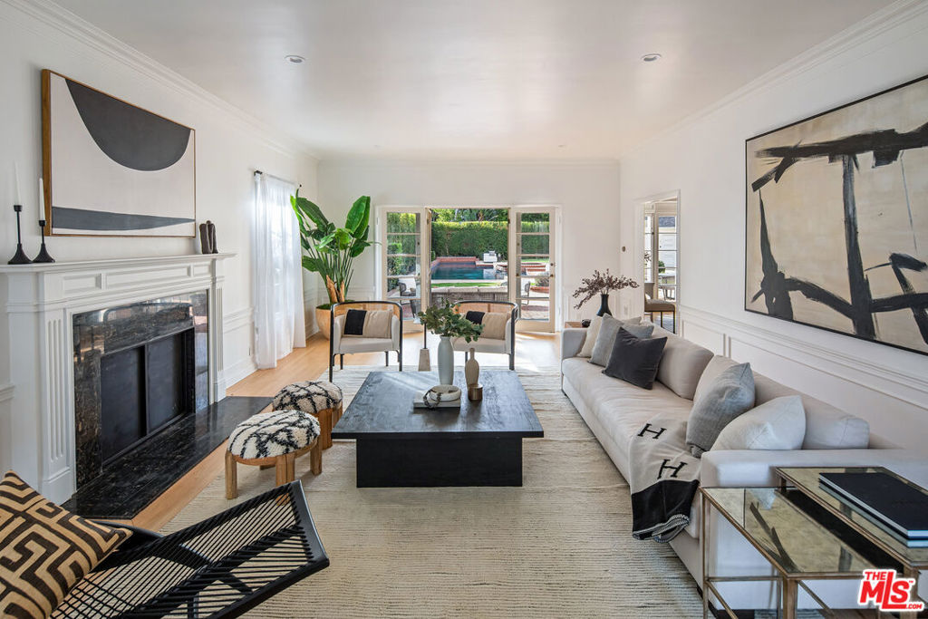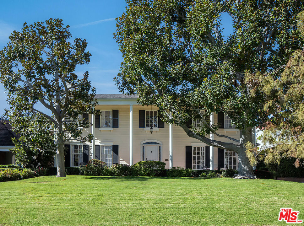 Tucked behind towering Southern Magnolia trees, this exquisite 5-bedroom, 5.5-bathroom estate embodies a seamless blend of classic elegance and contemporary comfort. A grand double-height foyer welcomes you into the voluminous residence, bathed in natural light throughout with expansive picture windows and glass doors. The formal living room is framed with charming French doors and extends onto the lush outdoor oasis, epitomizing indoor-outdoor, quintessential Beverly Hills living. Adjacent to the living room, a sunlit library office with bay windows and custom-built shelving, offers a tranquil retreat overlooking the picturesque patio and backyard. A beautifully updated chef’s caliber kitchen features a waterfall porcelain island, top-tier appliances, cozy sitting lounge, and dining area, ideal for culinary endeavors and intimate gatherings. A spacious dining room overlooks the lush gardens with nearby powder room, and a convenient side entry leads directly into a thoughtfully designed laundry area and staff room, complete with a full bathroom. Upstairs, a sunlit landing with a sitting nook provides views over the manicured front lawn. The primary suite is a sanctuary of luxury with its own private balcony, a spacious sitting lounge, and dual-vanity bathroom featuring a soaking tub and shower. Closet space is plentiful throughout. The secondary primary suite also boasts a private balcony and ensuite bathroom with a tub and shower, overlooking the front and back gardens. Additional highlights include a large downstairs basement for ample storage. The outdoor spaces are equally captivating, featuring a large pool and spa, a BBQ and dining area perfect for alfresco entertaining, and a gated garage with an extended driveway. An outdoor bathroom ensures convenience for guests enjoying the poolside ambiance. This home blends sophistication and charm with thoughtfully designed spaces indoors and out, creating a true oasis for refined living. Capturing the essence of Beverly Hills living, this residence provides easy access to premier shopping, dining, and top-tier schools, as well as the city’s exceptional services.