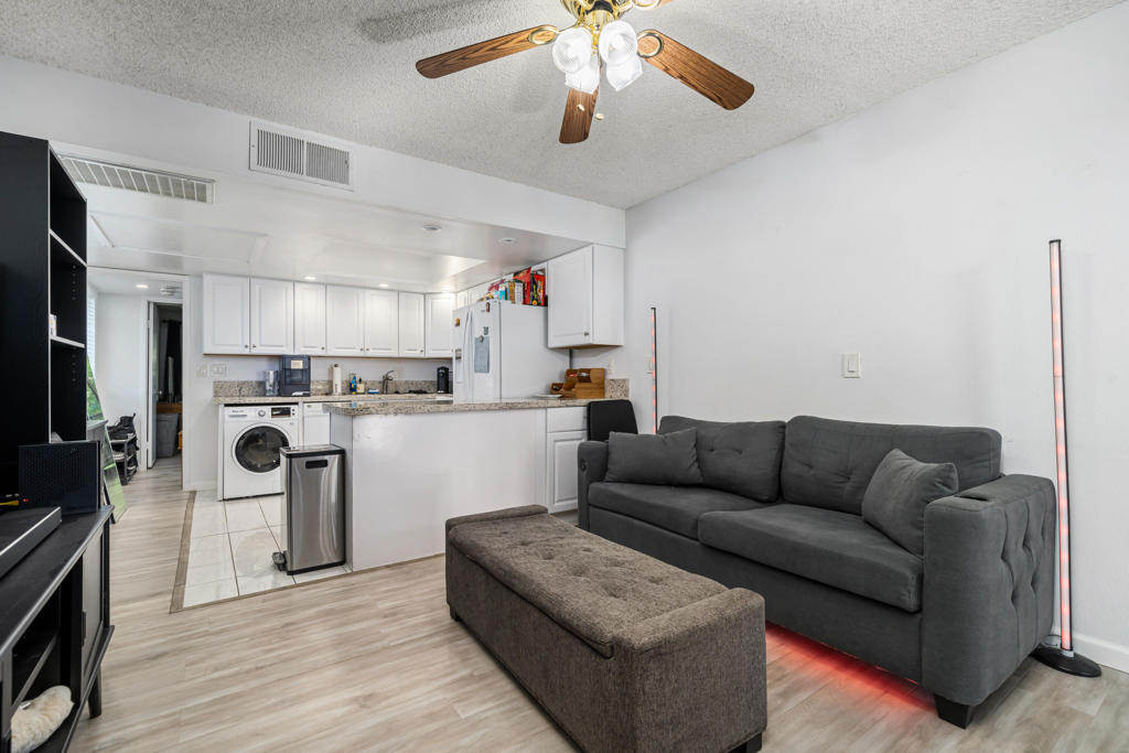 Experience true resort-style desert living in this beautifully remodeled 1 bedroom, 1 bathroom upper-level end unit condo located in the highly desirable Mission Lakes Country Club. Perfectly positioned to capture breathtaking panoramic mountain views, this light-filled home offers privacy, tranquility, and an elevated lifestyle. Step inside to a modern, move-in ready interior featuring stylish upgrades throughout, along with a new AC system and water heater for comfort and efficiency. Unlike many units in the community, this property includes its own in-unit washer and dryer, adding everyday convenience and value. Enjoy your morning coffee or unwind in the evening on your private balcony overlooking serene desert landscapes, where the views become part of your daily routine.As a resident of Mission Lakes Country Club, you’ll have access to resort-style amenities, including unlimited golf for two on the Ted Robinson-designed 18-hole championship course, multiple pools and spas, a vibrant clubhouse, fitness center, and a full calendar of social activities. The HOA covers water, cable TV, internet, trash, and exterior maintenance, making this an ideal low-maintenance primary residence, vacation getaway, or income-producing investment property. Offering one of the best values in a Southern California golf course community, this condo delivers the perfect combination of lifestyle, location, and long-term potential. If you’re seeking a desert retreat, golf lifestyle, or smart real estate opportunity, this move-in ready home is a must-see.