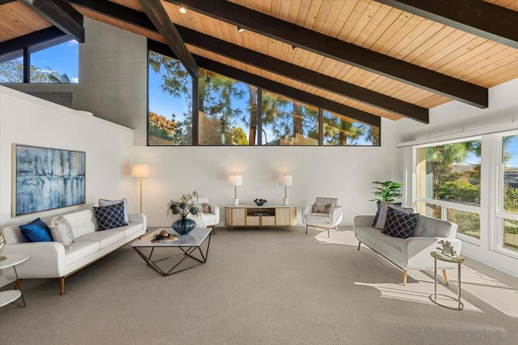 This exceptional 4-bedroom, 2.5-bath home is located in the highly sought-after Del Cerro community and sits on a generous lot backing to peaceful open space on one of the most coveted locations in the neighborhood. Inside, the spacious open-concept layout showcases soaring mid-century inspired tongue and groove ceilings, newer dual-pane windows, and expansive French sliders that provide a seamless connection to the private backyard. Step outside to enjoy a covered patio with Trex decking, a stunning pool surrounded by stylish brick pavers, and mature landscaping perfect for entertaining or relaxing summer days. Additional upgrades include newer kitchen appliances, slab countertops, and a newer roof. With convenient access to dining, shopping, parks, and top-rated schools, this home offers the very best of San Diego living. Don’t miss this incredible opportunity!
