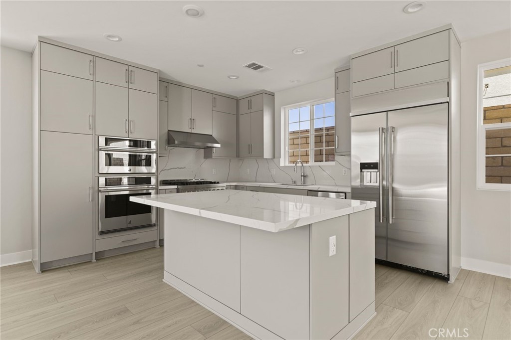 Welcome to Vista Rose, a new community located in Placentia which is close to Brea, Yorba Linda and the Anaheim Hills. Homesite 33 is a new construction home that is situated on a low maintenance homesite with easy access to the front gate. The Gallica floorplan features 4 bedrooms, with 3 full bathrooms, and is 2123 sq. ft, with a 2 car garage. Upon entering the home you’ll be greeted by an alluring great room that overlooks a welcoming foyer with a bright casual dining area, the kitchen features an oversized center island with breakfast bar, wrap around counter and ample cabinet space. The primary bedroom suite is secluded on the second floor, complete with a stunning walk-in closet and a serene primary bath with a dual sink vanity, large soaking tub, a lux shower and a private water closet. The secondary bedrooms offer sizable closets and share a full hall bath with a separate dual sink vanity area, also included is a desirable first floor bedroom and shared hall bath with a walk in shower. Highlights of the home include 9 foot high ceilings, a glass handrail on the staircase, and many thoughtfully curated designer appointed features selected by our design team. The community amenities include private park for homeowners, HOA maintained front yards, as well as a gated entry to the community. Homesite 33, has an estimated closing date of Fall 2025. Photos provided are renderings, actual home is under construction.