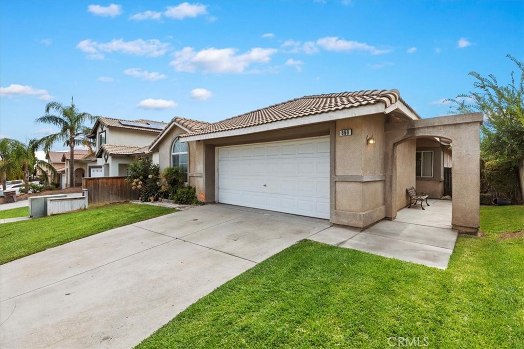 Wonderful newer home centrally located. This home is in great condition situated on a quiet cul de sac. Very open floorplan with vaulted ceilings and hardwood floors throughout. The living room has high ceilings and a lovely fireplace with stone trim. The kitchen has an island counter along with nice cabinets and granite counters. The stove is stainless steel. The back yard is extremely well manicured with a newer patio cover. The functional part of the home boasts 4 bedrooms with two full bathes. A true VAUE property. Tile roof also.
