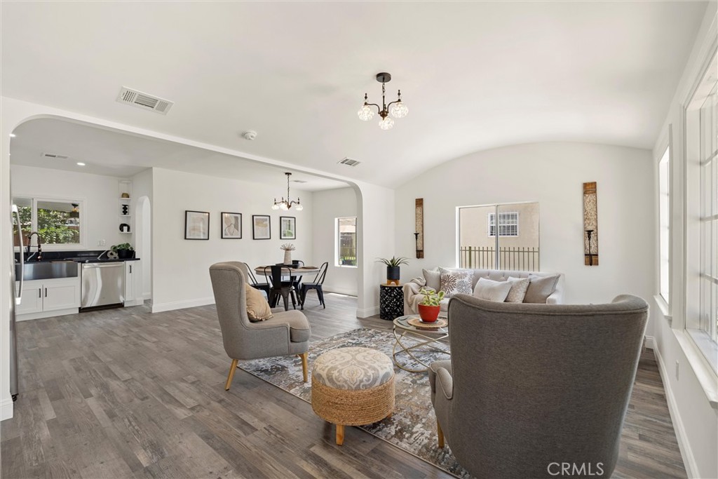 Welcome to 6616 & 6614 Vesper Ave, an exquisite Spanish-style multi-unit property nestled in the historic district of Van Nuys. Thoughtfully restored with modern Old-World Spanish charm, this unique 2 unit property of 4 bedrooms, 3 bathrooms, and approximately 1,651 sq ft of combined living space — ideal for multi-generational living, investment, or income potential. Step inside the front main residence 6616 Vesper Ave (1,301 sq ft) and be greeted by arched entryways, fully remodeled bathrooms, kitchen, and exterior wrought-iron accents, accenting the home’s Spanish heritage. The open-concept living room is flooded with natural light. The updated kitchen seamlessly blends modern Spanish charm with functionality, featuring handcrafted-style tile backsplash, sleek countertops, open shelving, and brand-new stainless-steel appliances — perfect for both everyday living and entertainment. Detached from the main home is 6614 Vesper Ave, permitted 350 sq ft ADU, echoing the same Spanish flair and its own private entrance — perfect for guests, extended family, or rental income. Outside, the long gated driveway accommodates multiple vehicles or even an RV, leading to a charming covered carport. The fully fenced property offers both privacy and curb appeal. A perfect blend of historic Spanish elegance and modern upgrades, this property is a rare gem—offering two homes for the price of one. Move-in ready and available for a fast closing — don’t miss this one-of-a-kind opportunity!