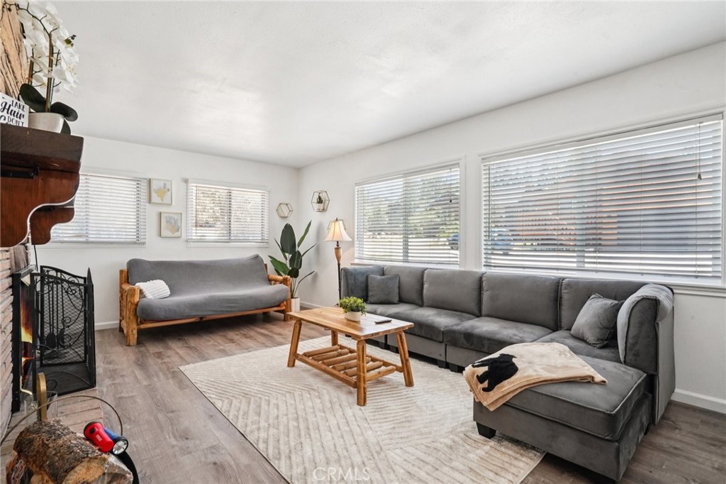 Set in Moonridge with quick access to Bear Mountain, the zoo, golf course, and the revitalized Moonridge commercial corridor, Bearfoot Retreat is a turn-key, move-in-ready 2 bed, 1 bath mountain cabin offering level entry and easy parking for three cars—an advantage in snow season. Inside, the main level features vaulted ceilings, large front picture windows, and an open-concept kitchen/dining area adjacent to the living room with fireplace; a short decorative step-down transitions from the entry/living zone to the kitchen/dining, full bath, and Bedroom 1. Durable LVP flooring runs through the common areas for low-maintenance living and smooth mobility, with carpet in both bedrooms for comfort. The downstairs level functions as Bedroom 2 or a flexible bonus space and opens to a second deck, complementing the primary front deck for outdoor lounging and gear staging. Updates are cosmetic throughout for a fresh, modernized feel while retaining cabin character. Practical details include wall heaters, level approach from street to front door, and straightforward snow-season access. The location places you close to lifts, trails, lake activities, dining, coffee, and groceries, making it a smart base for year-round recreation or an easy lock-and-go second home. Buyers will appreciate the straightforward layout, natural light from the picture windows, and dual-deck setup that extends the living space. Listing includes a 3D tour, video, and floor plan for clear orientation prior to showing; explore the media, then see how the home lives in person. Nearby Amenity List (approx. road distances): • Bear Mountain Ski Resort — ~1.2 mi • Big Bear Alpine Zoo — ~1.2 mi • Big Bear Golf Course/Clubhouse — ~1.1 mi • Snow Summit — ~2.6–3.0 mi • Moonridge Coffee Company — ~0.8 mi • Big Bear Lake (nearest marina) — ~2.0–2.5 mi • Vons Grocery (Big Bear Blvd) — ~2.1–2.3 mi