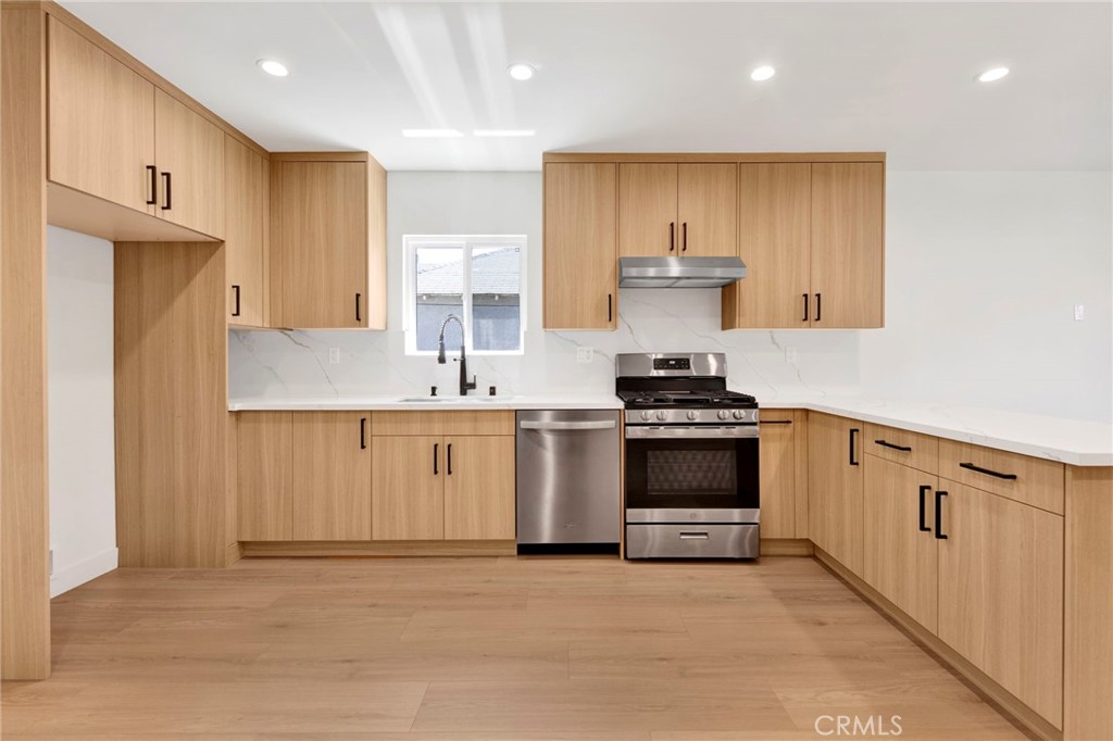 Brand new never been lived in modern beauty! Step into the spacious and open floor plan with so much attention to detail. Kitchen features European style white oak cabinets with quartz counter tops and backsplash, stainless steel appliances and black accent handles and faucet. Brand new flooring throughout, recessed lighting with dimmers, new doors and dual pane windows. Beautifully remodled bathroom with modern tiles, ugraded vanietes with quartz counter tops, and glass shower enclosures. Home also comes equipped with in unit laundry, central A/C, tankless water heating systems nad privately gated front entrance with motarized gate.