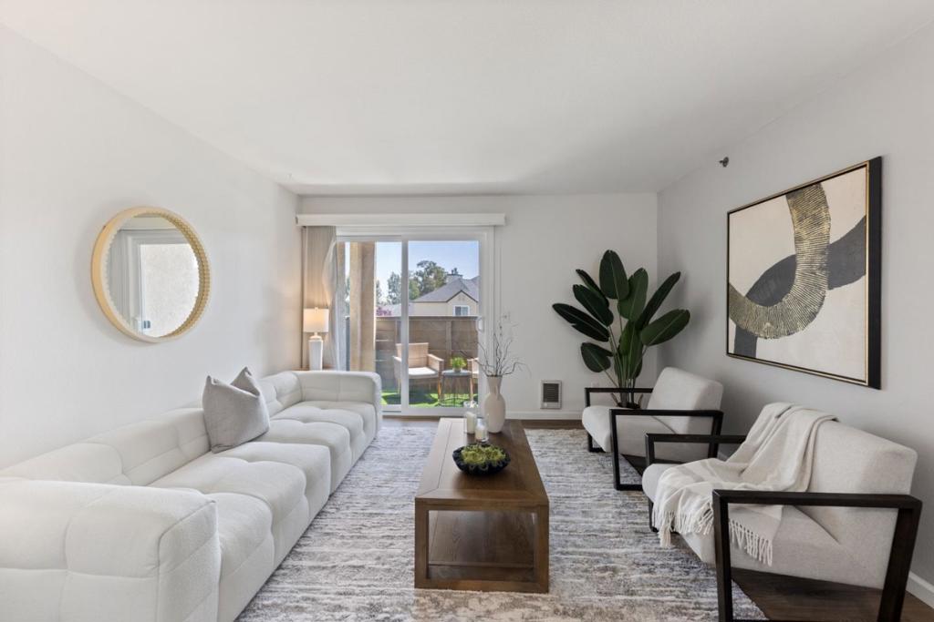 Welcome to this beautifully updated 1-bedroom, 1-bathroom condo! Freshly painted throughout, this inviting home features an in-unit washer/dryer, newly renovated kitchen with new cabinets, elegant countertops, and a convenient breakfast bar. The spacious living room flows seamlessly to your own private patio, creating a perfect indoor-outdoor living experience. The bedroom offers a generous walk-in closet, providing ample storage space. The bathroom has also been tastefully updated with modern finishes. Located in a well-maintained community with amenities that include a pool and hot tub, this condo is move-in-ready!