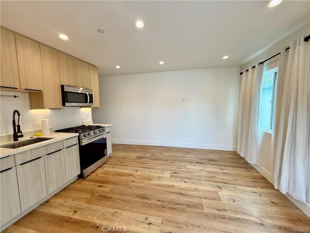 Stylish 1-Bedroom Home with private side yard This modern 1-bedroom, 1-bathroom unit offers clean, contemporary living with thoughtful upgrades throughout. The full kitchen features brand-new appliances, ample cabinetry, and sleek recessed lighting with 10ft ceilings that enhances the open layout. Durable laminate flooring runs throughout the space, combining low-maintenance ease with modern style. Enjoy the convenience of in-unit laundry, along with efficient heating and cooling for year-round comfort. A private side yard offers the perfect outdoor space for relaxing—ideal for outdoor lounging. Conveniently located near local shops, dining, and commuter routes. Easy parking.