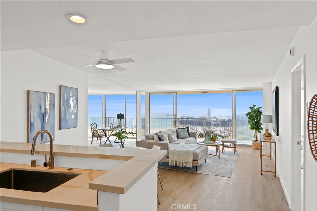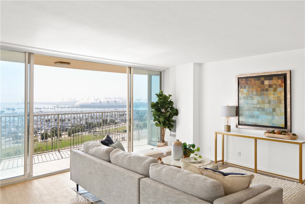 JUST REDUCED! AMAZING PANORAMIC OCEAN VIEWS from every room in this beautifully remodeled high-rise condo in the iconic International Tower! Featuring an open floor plan, this light-filled condo has been thoughtfully updated with new flooring, fresh interior paint, and smooth ceilings that add a modern touch. The newly updated kitchen is a chef’s dream, offering sleek soft-close cabinets, elegant Calacatta Gold quartz countertops, brushed nickel hardware, and stainless steel appliances — perfect for hosting and entertaining. The floating living room/2nd bedroom partition opens up to expand your space and enhance the panoramic views. Wake up to stunning ocean vistas in the spacious primary bedroom suite, complete with a luxurious, updated bathroom and a soaking tub for ultimate relaxation. Step outside to your large wrap-around balcony, where you can enjoy endless views of the ocean, waterfront, marina, Queen Mary, and even the Grand Prix! The International Tower, a mid-century modern architectural landmark, offers full amenities and 24-hour security. Enjoy the stylish lobby with grand piano, community room with a full kitchen, meeting room, an impressive fitness center, and a beautiful pool and lounge area. Located right across from the beach, this condo is just a short walk to great restaurants, shopping, nightlife, Shoreline Village, The Pike, the East Village Arts District, and the Performing Arts Center. You’ll also be in a prime spot across from several of the 2028 Summer Olympic sites. Don’t miss this rare opportunity to own a piece of paradise on the Ocean Blvd Corridor! FHA & VA approved.