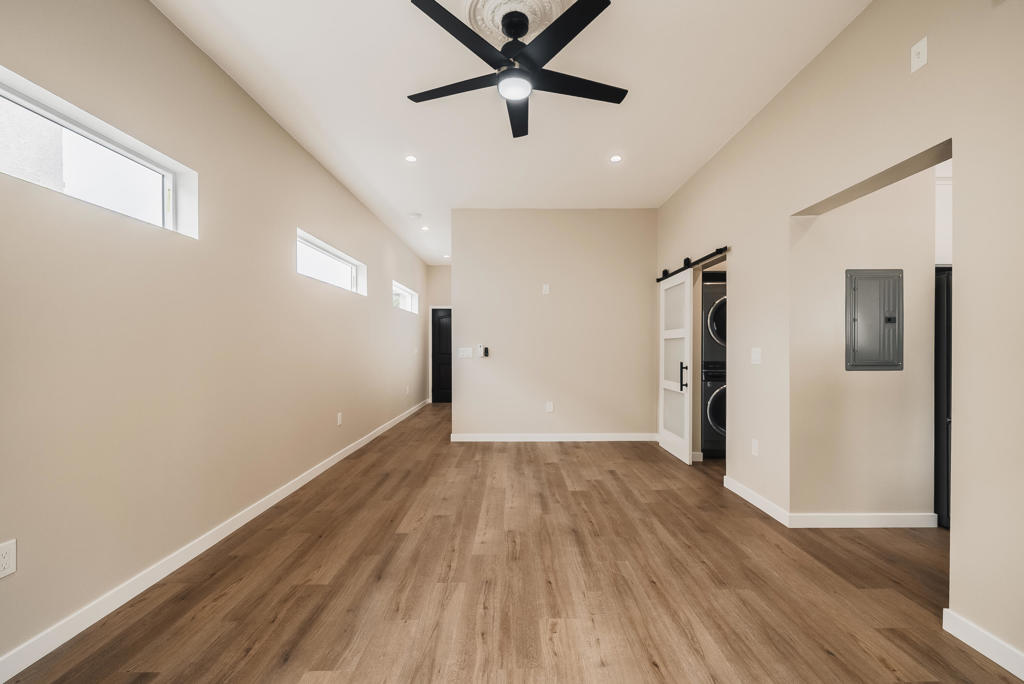 Newly constructed privately gated stand-alone accessory dwelling unit boasting one bedroom, one bathroom, 10 feet high ceilings, all new appliances, pristine white kitchen cabinets housing two sets of lazy-susans, a spice rack, floor to ceiling cabinetry, and luxurious quartz countertops, remote controlled mini-split HVAC units and remote operated ceiling fans in both living area and bedroom. The house features 680 square feet of well-designed living space with clerestory windows permeating abundant natural light. Appliances include laundry washer and dryer, French door refrigerator with water and ice dispenser, microwave, electric oven range with air fry feature, and a dishwasher. Shower showcases thoughtfully designed niches, rain and handheld shower heads. Abundant storage and closet space including a coat closet by the entry door and fully mirrored bedroom closet sliders. Living room sliding door leads to a backyard with a wraparound walkway to yet another sitting area near the entry. Solar system installed. Recessed lighting and vinyl plank flooring throughout with stone flooring in the restroom. To top it off, there’s a fruitful pomegranate tree in the yard. Tenant only pays electric utility. Water is included in rent. If interested in renting the house as a furnished midterm or long term rental, please inquire with listing broker.Property is located in the desirable historic Rossmoyne neighborhood of Glendale with easy access to the 134, 2, 210, 118, 110, 5 freeways and near public transit. Minutes to downtown Los Angeles, JPL, the Americana at Brand, Burbank, Glendale Adventist Hospital, USC Verdugo Hills Hospital, and Dignity Health.