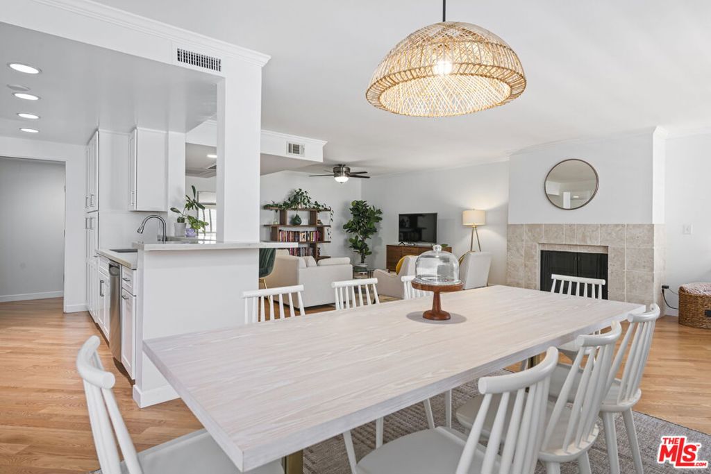 Discover this beautifully updated 1 bed/1 bath condo in a prime Brentwood location, just steps from San Vicente’s best retail, coffee shops, and restaurants (Whole Foods, Jon & Vinny’s, Starbucks). Enjoy an open floor plan with a living room, fireplace, and a flexible den area. A sliding door leads to a large, tiled balcony overlooking the courtyard patio and pool. The newly remodeled designer kitchen boasts quartz countertops, new cabinetry, and stainless steel appliances with a breakfast bar.The oversized primary bedroom features crown molding, new carpet, and a custom walk-in closet. The updated full bath includes a granite-top sink and glass shower. Additional features: new hardwood flooring, central A/C, and fresh paint.Includes gated parking with storage. Available now!