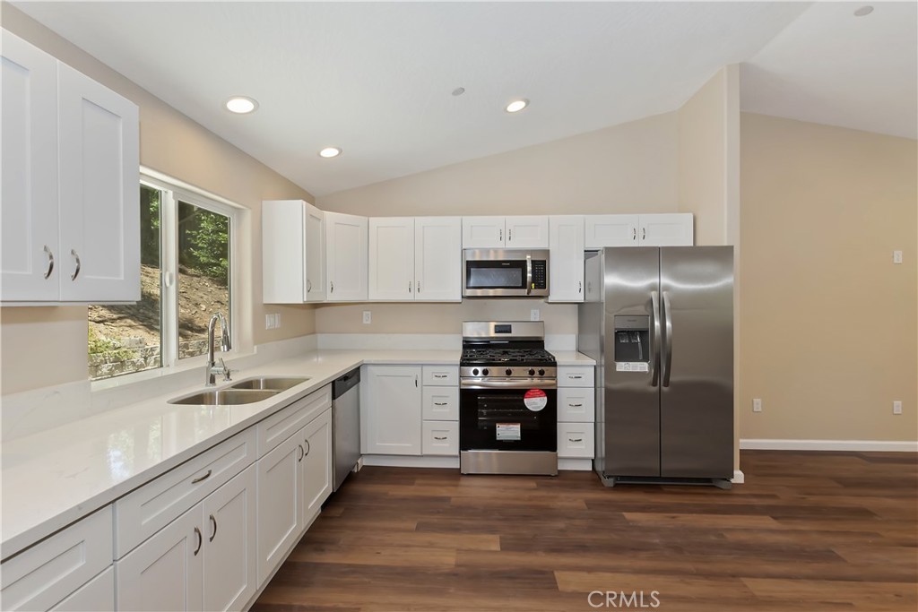 Discover Your Perfect Retreat in Crestline! Step into this exquisite new construction, complete with final inspection from the county, offering both modern luxury and energy efficiency. Enjoy the benefits of solar power, YES, SOLAR POWER, combined with brand new appliances and a one-year builder warranty for added peace of mind. This thoughtfully designed home features a versatile layout with two primary suites and two well-appointed bathrooms, ideal for families or hosting guests. The inviting great room showcases soaring vaulted ceilings and an efficient gas stove, creating a warm and welcoming space. A convenient one-car garage provides easy access, while the level entry from the street ensures seamless everyday living. Relax on the charming back patio, where you can unwind and soak in the serene surroundings. Situated on a plow-maintained road, this home boasts a prime commuter location close to the picturesque Lake Gregory. Experience the beauty of all four seasons in this brand-new property, ready for its new owners to create lasting memories. Don’t miss your chance to call this wonderful place home! Home has been virtually staged, no furnishings included.