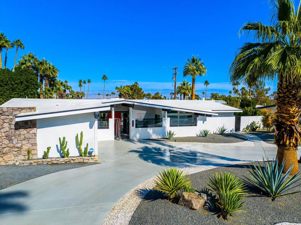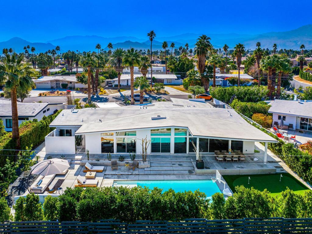 73286 Goldflower Street is a stunning mid-century modern gem by renowned architect Charles Du Bois, once the private retreat of Hollywood legend James Franciscus. Featured on the 2025 Modernism Week Signature Home tour, this meticulously restored and expanded residence blends its iconic heritage with modern luxury. Nestled on a quiet cul-de-sac near El Paseo, this fully furnished home offers the ultimate in south Palm Desert living.A multi-year renovation, completed in 2024, expanded the home to over 3,000 sq. ft., including a seamless 1,000 sq. ft. addition. Du Bois’s signature indoor-outdoor flow is enhanced with expansive glass walls, clean architectural lines, and abundant natural light, perfectly capturing California Modernism. High-end finishes, warm walnut accents, and sleek modern tile work elevate the interiors, while smart home technology integrates effortlessly. Every detail, from the restoration of original elements to the selection of contemporary materials, has been carefully curated to honor the home’s historic significance while offering today’s most desirable comforts.The oversized primary suite is a private retreat with a zen garden, outdoor shower, walk-in closet, and built-in gym. An additional en suite guest room offers privacy, while two guest bedrooms share a spacious bath, making it ideal for hosting. A dedicated laundry area adds everyday convenience.Designed for relaxation and entertainment, the open-plan living space includes a great room with a pool table, multi-room Sonos speakers, and Phillips Hue lighting, all controlled by voice, phone, or wall-mounted panels.The entertainer’s backyard features a covered lounge, built in heaters, fire pit, and multiple courtyards, maximizing indoor-outdoor living. Thoughtful landscaping and architectural details create a harmonious retreat.This architectural masterpiece in south Palm Desert presents a rare opportunity to own a piece of history close to El Paseo, shopping and everything you may need.