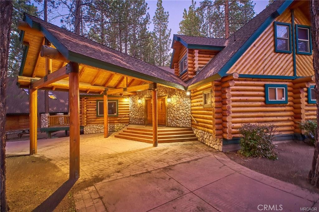 Iconic dual-cabin mountain estate on 1.14 acres with 7,162 sq ft of total living space in one of Big Bear’s most desirable neighborhoods. A dual gated entry leads to two beautifully crafted full log-style homes surrounded by lush forest. Cabin One features a porte-cochère, open living and dining area with stone fireplace, wood flooring, and a large kitchen with stainless steel appliances, stone counters, pantry, and laundry. Main level includes two ensuite bedrooms and a guest 1/4 bath. Upstairs offers a huge ensuite primary bedroom with dual vanities, glass shower, stand-alone tub, water closet, and an upper den. Cabin Two showcases a dramatic dual staircase leading to an upper-level ensuite primary with an 8-person jacuzzi, walk-in shower, dual vanities, and water closet. Main level includes an additional ensuite bedroom, a spacious great room with stone fireplace, and formal dining. Kitchen with stainless appliances, stone counters, pantry, and laundry room. Exterior amenities , lush landscaping, five entertainment decks, a three-hole putting green, and an oversized garage previously used as a training facility for professional fighters . A rare mountain compound offering luxury, space, and a true escape and variety of possible uses.