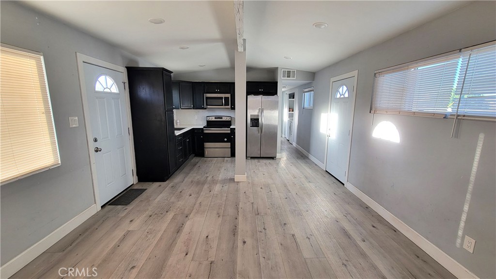 Nestled in the heart of 29 Palms, just a stone’s throw from the iconic Joshua Tree National Park, this fully updated two-bedroom home is a delightful mix of mid-century modern style and desert charm; offering a perfect blend of cozy comfort and contemporary design. With its inviting atmosphere, stylish updates, and proximity to one of California’s most famous national parks, this home is an excellent choice for a family retreat or a lucrative investment opportunity. This home boasts an open floor plan with updated kitchen, stainless steel appliances, hardwood floors, updated bathroom, washer and dryer, air conditioning unit, lots of natural light and a spacious backyard that is an empty canvas for your perfect desert retreat or Airbnb playground. This sanctuary is just minutes away to the coveted Indian Cove Campground entrance of Joshua Tree National Park, one of California’s most stunning natural trails. Guests can enjoy hiking, rock climbing, stargazing, and exploring the park’s iconic Joshua Trees and rugged terrain. Whether used as a cozy family getaway or a lucrative short-term rental, this updated, quaint two-bedroom home offers everything needed to create memorable experiences in the desert, with an appealing style and a prime location near Joshua Tree National Park and all the town’s local shops and restaurants.