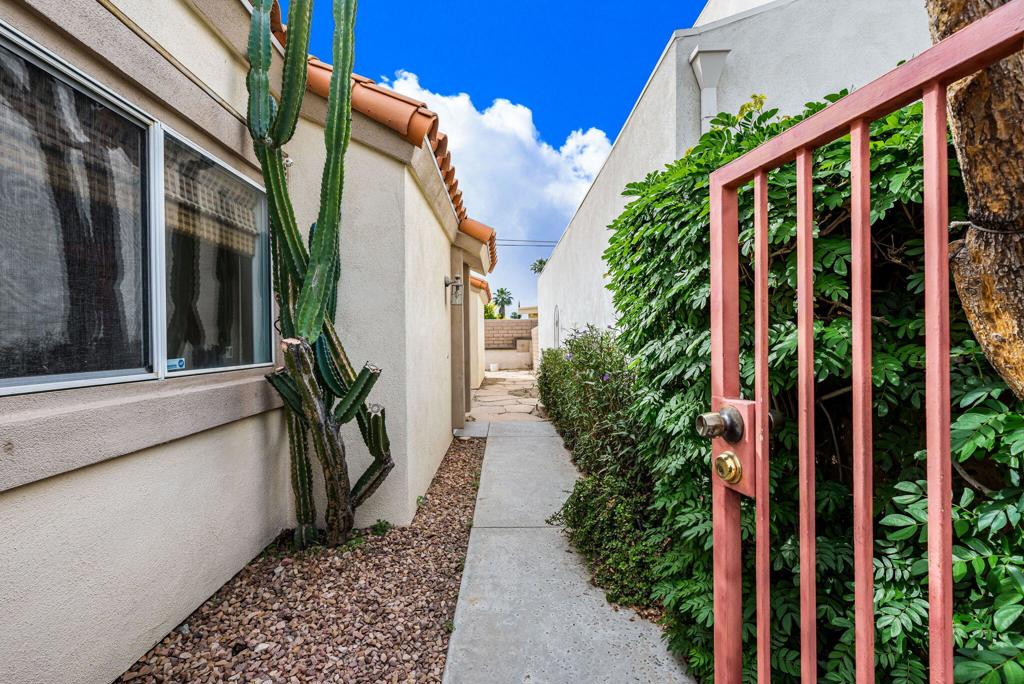 Welcome to this beautifully updated two-story single-family home in Palm Desert. Featuring 3 spacious bedrooms, all with ensuite baths, this home offers comfort and privacy throughout. Step inside to a light-filled interior featuring soaring ceilings, fresh paint, and no carpet, creating a clean, modern aesthetic. The custom upgrades throughout this home showcase quality materials and stylish finishes, while major improvements including a new roof and HVAC system offer lasting peace of mind.Enjoy a spacious upstairs en suite bedroom, offering the flexibility to serve as a movie or game room, home office, private primary retreat, or a variety of other uses to fit your lifestyle. This property is located on a quiet street with no direct rear neighbors, offering added privacy. It also features a charming courtyard that extends to a spacious back patio, perfect for entertaining or creating your own desert sanctuary. Complete with a built-in BBQ, low-maintenancelandscaping, and an attached 2-car garage, this home has it all, plus no HOA dues. Conveniently located near top-rated schools, restaurants, and shopping.