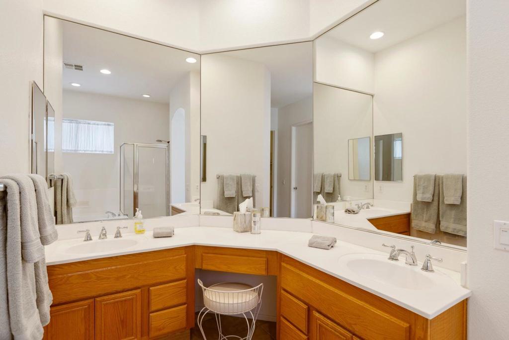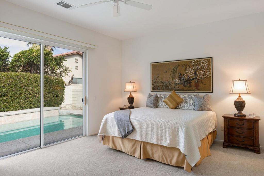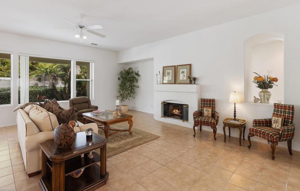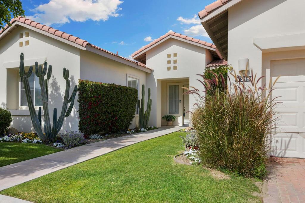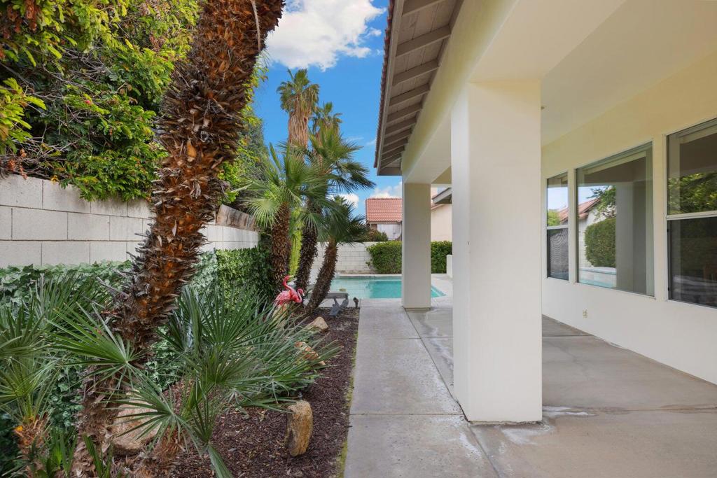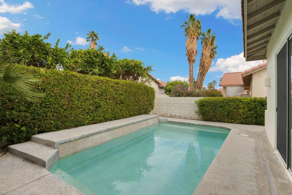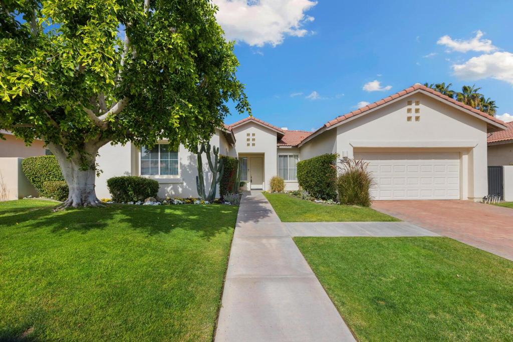 Nestled in the heart of Palm Desert, this beautifully maintained 3-bedroom, 2.5-bathroom home in Canyon Crest is the perfect blend of comfort and convenience. Ideally located near top-rated schools, scenic parks, fine dining and world-class shopping, this home offers over 2,500 sq. ft. of living space in an unbeatable location. Step inside and enjoy the open, airy great room floor plan, with an oversized living room that features a cozy fireplace and flows seamlessly into the kitchen and dining areas. Large windows and a sliding door to the patio flood the space with natural light, creating a bright, inviting atmosphere. The spacious main bedroom is a true retreat, complete with a large walk-in closet and an en-suite bath featuring dual vanities and a step-in shower. On the opposite side of the home, two generous guest bedrooms share a full bath with dual sinks and tub/shower. A powder room is perfect for additional guests. Recently repainted inside and out, this home is move-in ready. All bedrooms have been updated with new carpet and the well-designed den/office includes built-in floor-to-ceiling bookcases and a desk–perfect for work or leisure.Step outside to your own private oasis, where you can dine alfresco, take a dip in the sparkling pool or relax under the covered patio. With no HOA dues, this is a rare opportunity to own a home in one of Palm Desert’s most sought-after communities.Don’t miss out–call today to schedule a tour!