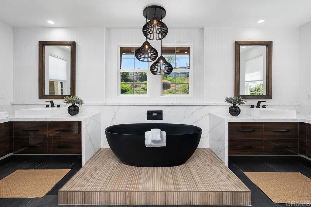 Tucked away in the coveted La Costa Oaks South community, 7661 Sitio Algodon is a meticulously cared-for residence offering panoramic westerly views, a flexible floorplan tailored for today’s lifestyle, and a tranquil cul-de-sac setting. The recently renovated kitchen is a chef’s dream, showcasing a generous island, modern finishes, a brand-new 2025 Thor cooktop, Bosch dishwasher, Frigidaire double oven, and KitchenAid microwave. Freshly painted throughout, the main home features four upstairs bedrooms and two-and-a-half baths, plus a fully self-contained ground-level studio ADU—complete with its own private entrance, bathroom, kitchenette, and outdoor patio, ideal for guests, multigenerational living, or added income. Upstairs, the luxurious primary suite feels like a private retreat, boasting a remodeled spa-style bathroom, including Mr. Steam steam shower with chroma light, and a custom oversized deck with a hot tub—the perfect place to unwind and take in sunset views. Designed for effortless indoor-outdoor living, the home offers spacious interiors, a beautifully appointed courtyard with fireplace, a low-maintenance backyard with a fire pit, built-in BBQ, covered pergola, and wide-open ocean views. Additional highlights include owned solar, a car charger, and a whole-house water filtration system. Enjoy access to award-winning schools, resort-style community amenities, scenic trails, shopping, and beaches—all in one of North County’s most desirable neighborhoods.