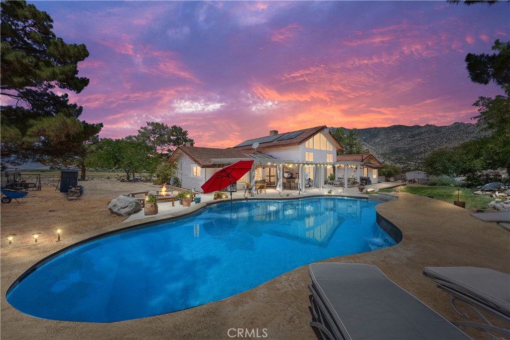 Nestled in the heart of the beautiful Kern River Valley, within 20 miles from both Kernville & Lake Isabella, this 1979 custom-built home offers a rare blend of space, comfort, & privacy. Boasting 3,393 sq. ft. of living space, this unique property sits on 5.24 acres & includes two adjoining parcels. Inside, you’ll find a thoughtful split-wing floor plan featuring 3 spacious bedrooms and 3 full bathrooms, a large bonus game room, a sunlit garden room, & an upstairs loft/office space with access to a second-floor balcony perfect for stargazing or sipping your morning coffee.This home is built for year-round comfort and efficiency with two HVAC units (2-ton & 5-ton), split systems in the primary & upstairs bedrooms, owned solar power (both ground-mounted and rooftop panels). Additional features include granite counter tops in the kitchen, two septic tanks, a private water well, & RV hookups, in-ground pool, fire pit, detached garage, 30×40 shop, alumawood patio cover, carport & more.