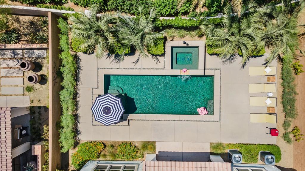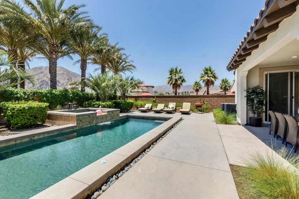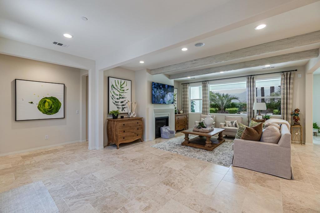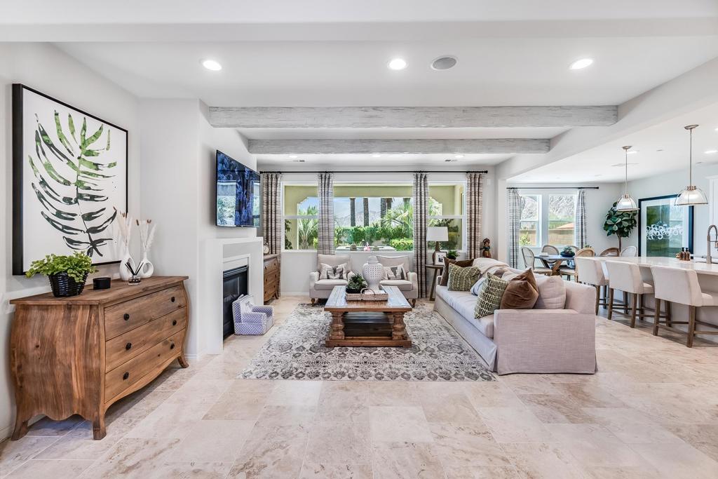 Turnkey Furnished Annual Lease. Your desert paradise awaits in this highly upgraded former model home behind the gates of Floresta. This exquisite turnkey designer decorated furnished home boasts 3 bedrooms, plus a bonus room/flex space and three & a half baths & approx. 2467 SF. Enjoy breathtaking panoramic mountain views and an expansive open living space in this stunning home. The great room seamlessly connects to a modern gourmet kitchen featuring a large center island, stainless steel appliances, and a spacious eating area, all bathed in natural light. Formal dining room perfect for entertaining. The primary suite with sumptuous bath features a soaking tub, oversized shower, dual sinks & large walk-in closet. The second and third bedrooms have stylish ensuite bathrooms, while the bonus room/flex space offers endless possibilities with built-in features and a powder room across the hall. Relax in the resort-style backyard with a sparkling pool and spa where you can lounge with endless sunny days. Enjoy evenings dining under the desert sky or marvel at the spectacular south-facing views of the Santa Rosa mountains! Laundry room with ample storage and two car garage. Community features include clubhouse, community pool & spa, cabanas, BBQ area and greenbelt. Close to fantastic restaurants, shopping, world class golf, charming Old Town La Quinta, Coachella & Stagecoach festivals & more. Start living the desert lifestyle now! Turnkey furnished home available Nov. 1st 2025 for lease. Annual lease preferred.
