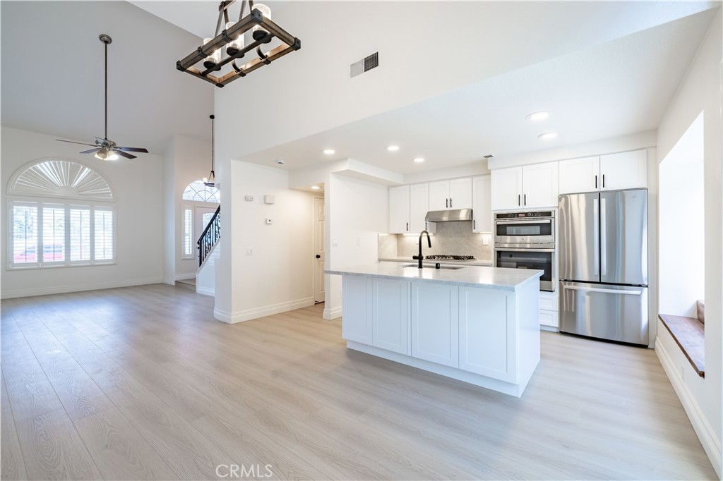 Recently renovated throughout, this beautifully updated Foothill Ranch single-family residence offers 3 bedrooms, 3 bathrooms, and a 2-car garage, ideally situated on a quiet cul-de-sac. The bright and open floor plan is filled with natural light and features soaring ceilings, elegant wood flooring, newly interior paint, plantation shutters, and dual-pane windows. The updated kitchen includes marble countertops and backsplash, stainless steel appliances, bar seating, and a cozy breakfast nook that opens to the dining area and family room with a welcoming fireplace—ideal for everyday living and family gatherings. The spacious primary suite boasts vaulted ceilings and a remodeled bathroom with an oversized soaking tub and separate shower, while secondary bedrooms provide plenty of space for kids, guests, or a home office. Sliding glass doors lead to a private backyard designed for entertaining and family fun. Conveniently located within walking distance to parks, pools, and close to shopping, dining, entertainment, easy access to freeways. A wonderful place to grow, gather, and call home.