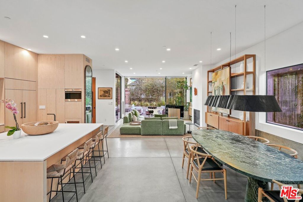 Discover refined coastal living in this modern architectural residence, ideally situated on a prized Venice Walk Street, just moments from the beach and the boutiques, dining, and energy of Abbot Kinney Boulevard. From the visionary firm Electric Bowery, the home was designed with an organic modern aesthetic, blending clean lines with rich textures, neutral tones, and natural materials to create spaces that are both minimalist and inviting. Soaring ceilings and Fleetwood retractable glass doors allow sunlight and ocean breezes to flow through the interiors, blurring the lines between indoor comfort and outdoor serenity. The open-plan main level seamlessly transitions from the gated front patio through a light-filled living room anchored by a gas fireplace, into the chef’s kitchen and dining area — offering a layout ideal for both daily living and entertaining. The kitchen is appointed with honed marble countertops, custom cabinetry, and premium Wolf and Sub-Zero appliances, including a 6-burner range and wine fridge. Upstairs, three spacious en suite bedrooms await, including an expansive primary suite with high, vaulted ceilings and access to a private balcony that spans the full width of the home. The spa-like primary bath features dual vanities, a stone-clad soaking tub, glass-enclosed shower, and a generous walk-in closet. Atop the residence, a private rooftop deck invites sun-soaked lounging and al fresco dining, complete with a built-in BBQ and framed by swaying palms and endless sunset views. Additional features include a gated entry, automatic window shades, upstairs laundry room, and an attached two-car garage with EV charger. Combining rare Walk Street charm, architectural integrity, and effortless proximity to Venice’s most iconic attractions, 810 Amoroso Place offers a truly exceptional opportunity to embrace a vibrant California coastal lifestyle.