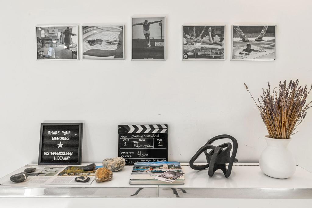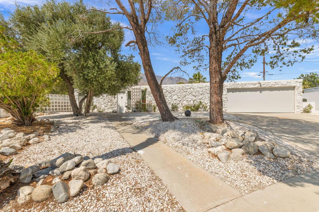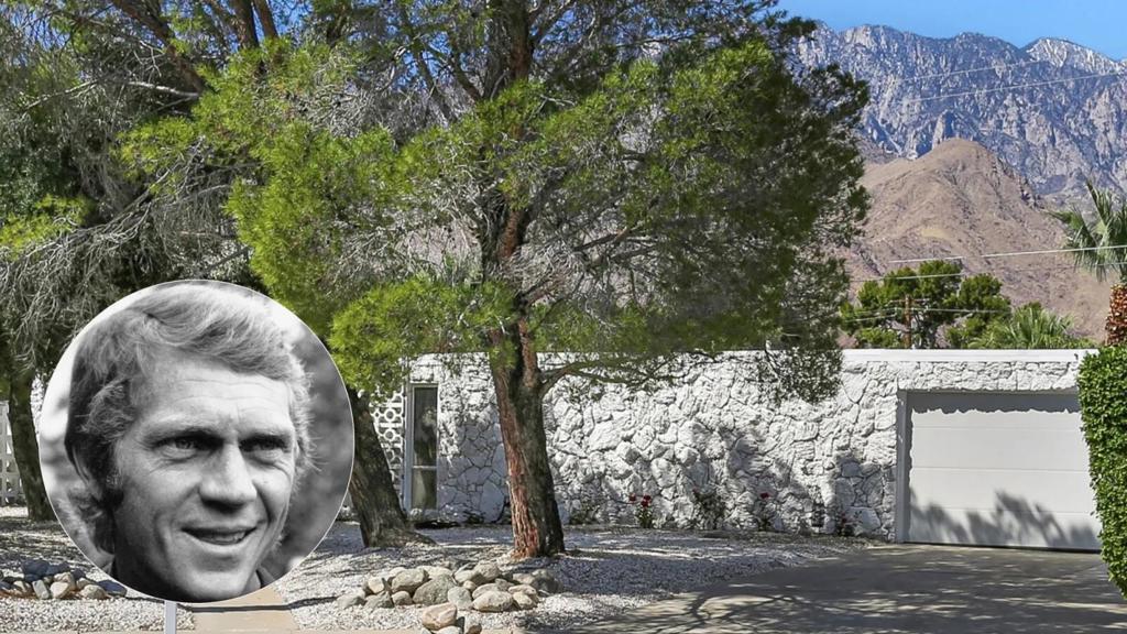 Tucked away on a private cul-de-sac in Racquet Club Estates, this iconic midcentury home was designed by architects Dan Palmer and William Krisel and built by the Alexander Construction Company. Hand-selected by Steve McQueen as his personal desert retreat, the property sits on one of the neighborhood’s premier lots, offering dramatic San Jacinto views and exceptional privacy.McQueen’s custom-designed, south-facing pool is ideal for swimming laps or diving from the board. Two conversation areas are integrated into the expansive wrap-around yard, surrounded by mature trees and a citrus grove planted by McQueen himself, perfect for entertaining or quiet relaxation.The white stone facade opens into a sleek, all-white interior where European minimalism meets classic post-and-beam design. Original features include perforated ceiling tiles, a floating inset fireplace, and walls of glass that connect indoor spaces to the outdoors. The open kitchen is outfitted with marble-topped Pierre Cardin cabinetry with matching bar and a Wolf range.This is the very home where Life magazine photographed McQueen in 1963, lounging poolside and slow dancing in the living room. A rare chance to own a true piece of Palm Springs history — boldly stylish and effortlessly timeless. All key systems have been recently updated.