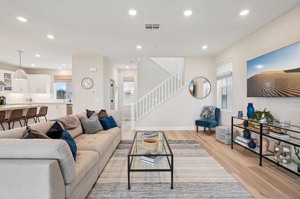 Located in the highly desirable 3 Roots community, this near-new 2023 residence situated on a premium corner lot offers privacy, modern luxury, and eco-conscious living. Enjoy the rare advantage of a home with no neighbors to one side and views of the planned walking path and open green space. A perfect blend of privacy and natural views. The open floor plan highlights a beautifully appointed kitchen with stainless steel appliances, an island with breakfast bar seating, and seamless flow into the living area. Indoor-outdoor living shines with both a private balcony and patio—perfect for relaxing or entertaining. The main floor includes a convenient bedroom and full bath, while upstairs you’ll find a spacious primary suite with its own retreat, spa-like en-suite bath, and walk-in closet. Energy-efficient solar panels and a tankless water heater provide sustainability and cost savings. Nestled in Sorrento Valley/Mira Mesa’s booming tech hub, 3 Roots was thoughtfully designed to connect residents with both nature and innovation. Resort-style amenities include pools, parks, playgrounds, a state-of-the-art clubhouse and fitness center, plus scenic trails and preserved open space. The upcoming Mobility Hub offers bike and car shares, while the Root Collective features artisanal dining, local retail, and pop-up galleries. Ideally located near UCSD, biotech hubs, La Jolla beaches, and downtown San Diego, this is more than a home—it’s a lifestyle.