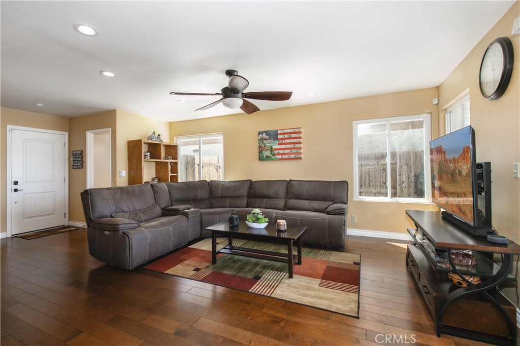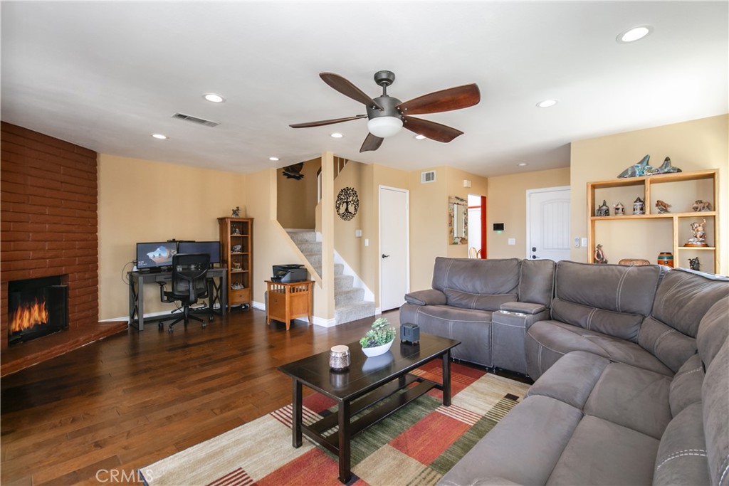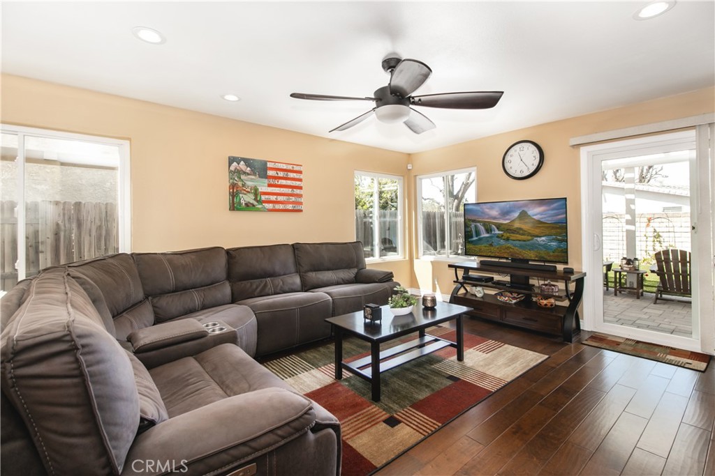 Love at first site, this home has been upgraded throughout and is ready to move in. Located on a double cul-de-sac, with no HOA, perched on the top of Sequoia, with views of the valley. The downstairs living space, Living Room/Family Room, are complete with wood flooring, fireplace, dual pane windows and recessed lighting. The kitchen has been upgraded with granite countertops, stainless steel appliances – which will stay with the property, custom cabinets, pull out drawers in the pantry and a lazy susan style feature in the corner cabinet for ultimate space. There is dining in the kitchen. Upstairs you will find carpet throughout and two secondary bedrooms with ceiling fans and plenty of closet space. The bathroom has been upgraded featuring a shower/tub combo and wood sink with marble counter top. The master bedroom offers a view of the valley, ceiling fan, spacious walk-in closet and is light and bright. The master bathroom features a large walk-in tile shower, dual sinks with quartz counter tops and a skylight to illuminate the quarters. The front and rear yard are on a drip system and feature drought tolerant landscaping. As you enter the rear yard from the Living Room, you are greeted with beautiful pavers, artificial grass, an Outdoor shed that will stay with the property and a patio cover to help enjoy any time of day. Beautiful rock landscaping in the front and rear, completes this home that has been well maintained and cared for. Two car garage with rafter storage space and the new solar system is paid for.