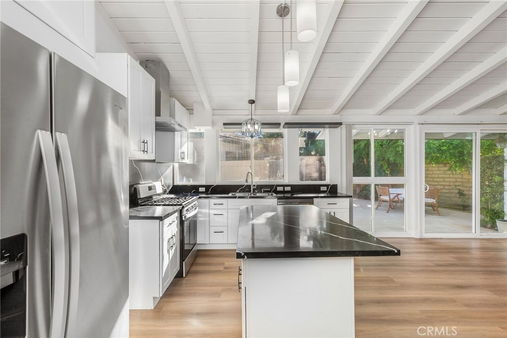 Tucked away on a quiet Winnetka street, this beautifully reimagined 1954 mid-century modern showcases timeless architectural design paired with thoughtful contemporary updates. Set within a mid-century tract known for its distinctive modernist influences, the home features vaulted post-and-beam ceilings, clerestory windows, and expansive walls of glass that seamlessly connect the interior to the outdoors. The recently renovated main residence offers approximately 1,500 square feet of bright, open living space and features 4 bedrooms and 3 bathrooms, where natural light pours through oversized windows and sliding glass doors. The airy living and dining areas flow effortlessly beneath soaring beamed ceilings, creating a sense of volume and warmth that defines classic California mid-century design. The updated kitchen blends modern finishes with the home’s architectural character, featuring sleek cabinetry, quartz countertops, stainless steel appliances, and an island ideal for gathering and entertaining. Large sliding doors open to a private outdoor patio, creating an ideal indoor-outdoor lifestyle perfect for relaxing, dining, or entertaining beneath mature trees and lush landscaping. Adding exceptional value and versatility, the property also includes a detached approximately 500-square-foot one-bedroom, one-bathroom ADU completed in 2022, complete with a full kitchen and washer and dryer hookups. Currently tenant occupied, the ADU provides immediate rental income while offering future flexibility for guests, extended family, or a private home office. Situated on a spacious corner lot with mature landscaping and surrounded by classic mid-century homes, this property offers a rare opportunity to own an authentic architectural residence with modern upgrades and built-in income potential, combining timeless design, thoughtful renovation, and investment upside in one of Winnetka’s established residential neighborhoods.