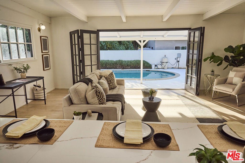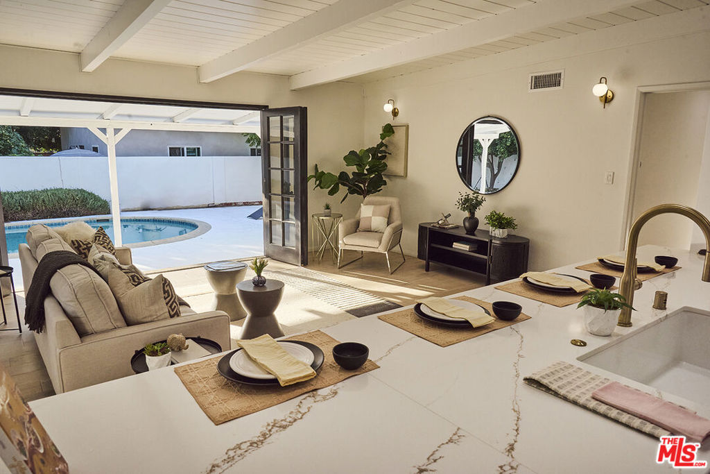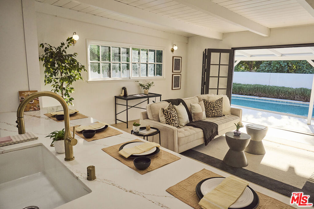 This stunning four bedroom, three bathroom home has been completely updated with modern amenities and high-end finishes. Two of the bedrooms (including the Primary) feature en-suite bathrooms and large dual closets. The home boasts engineered wide plank oak flooring throughout as well as all new stainless steel kitchen appliances including a Samsung smart refrigerator, and gas range oven and an LG dishwasher. The kitchen also has Calacatta quartz counter tops and new soft close cabinetry. The new central HVAC Oxbox system with Nest thermostat ensures comfortable temperatures year-round. The home features a sparkling pool and garden which has been beautifully landscaped and is surrounded by lavender plants and mature palm trees. The property also features mature heavy fruit bearing trees, including tangerine, orange, lemon, and a grapevine. Don’t miss out on the opportunity to make this beautiful house your new home!