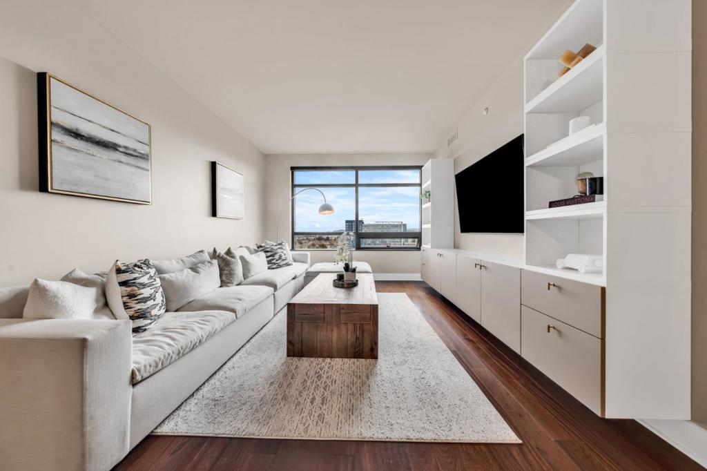 Elevate your lifestyle in this stunning luxury high-rise condo, a masterpiece of modern elegance and refined living. Nestled in the heart of Downtown San Jose, this exceptional residence offers unparalleled panoramic views, stretching across the city skyline and beyond. Designed with sophisticated high-end finishes, this condo boasts an open-concept living space adorned with floating shelving units that blend seamlessly with the contemporary aesthetic. The state-of-the-art floating TV media center serves as the focal point of the living area, delivering both function and flair. The gourmet kitchen is a culinary dream, featuring top-tier stainless steel appliances, sleek quartz countertops, and custom cabinetry. The spa-inspired primary suite offers a tranquil escape with a luxurious en-suite bath, a soaking tub, and a spacious walk-in closet. Indulge in world-class amenities, including a state-of-the-art fitness center, a sparkling swimming pool, an upscale clubhouse, a billiards room, and an outdoor gathering space perfect for entertaining under the stars. With unmatched walkability to the finest dining, shopping, and cultural hotspots, this is urban luxury at its finest. Experience sophistication, style, and convenience all in one place.