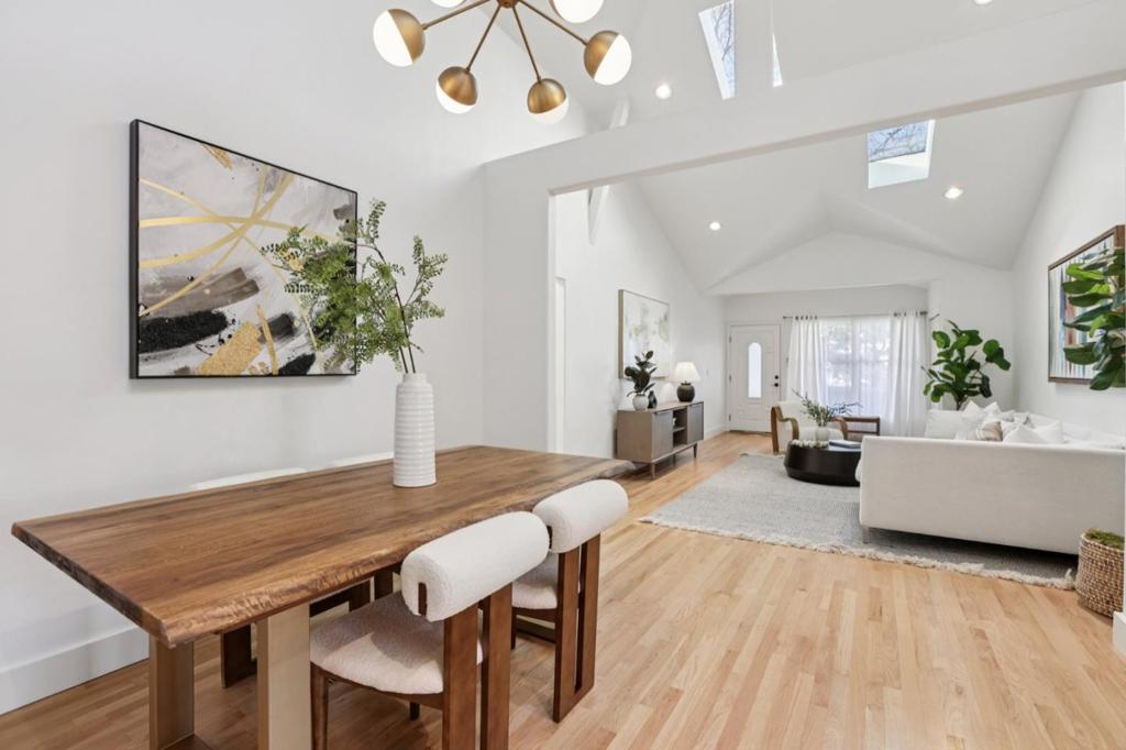 Welcome to 915 North Road, Belmont! North-facing and sunny, this move-in ready 3 bedroom, 3 bath home sits on a flat lot in the coveted neighborhood of Central Belmont. Enjoy the open concept living room that flows seamlessly into the dining area, kitchen, and family room. Vaulted ceilings, skylights, and oversized windows take in the abundant natural sunlight. The gourmet kitchen features a premium 6-burner Thermador gas stove and matching stainless steel suite of appliances. Plentiful cabinets provide ample storage & pantry space. Live the indoor-outdoor lifestyle year round with a low-maintenance backyard, complete with a covered pergola and playhouse/office. Amenities include three newly remodeled bathrooms with designer fixtures, a new 50-year roof, new gutters with leaf guard, French drains, professionally landscaped front and back yards, recessed lighting, hardwood floors, dual paned windows, new epoxy flooring in the garage, EV charger socket, a 200 amp panel ready for solar, and more! Near the shops and restaurants of downtown Belmont, Hillsdale Shopping Center, and downtown San Mateo; health clubs (Movement Climbing, Yoga & Fitness, F45 Training); and excellent schools: Central Elementary, Ralston Intermediate, Carlmont High (buyer to verify enrollment).