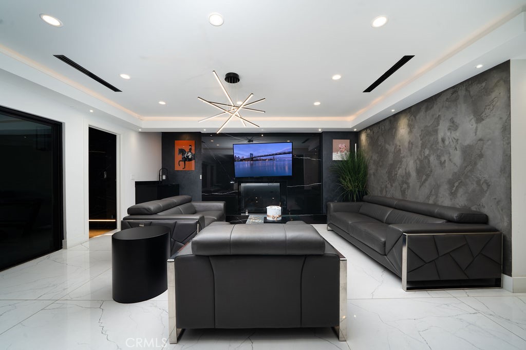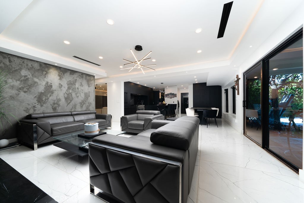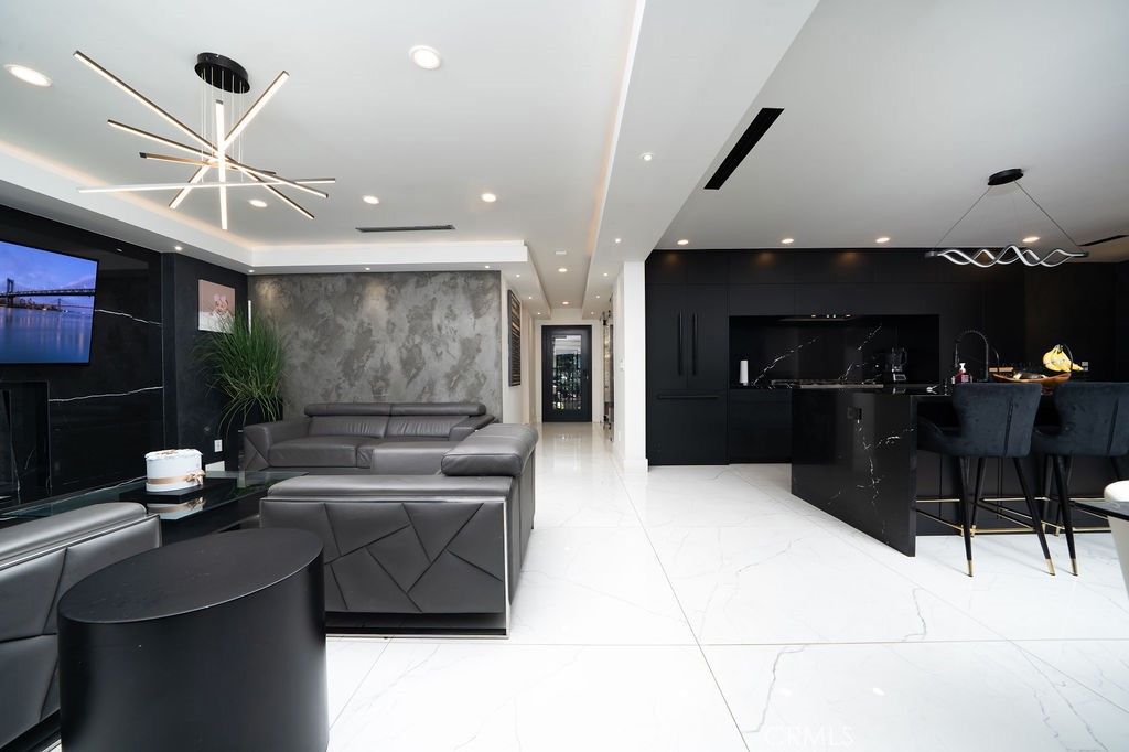 Come for the luxury, stay for the lifestyle. From the moment you pull up, this Northeast Downey home stands out in the best way, with clean lines, smooth stucco, and outstanding craftsmanship that hints at the quality inside. Set on a generous 12,173 sq ft lot, this fully remodeled 4-bedroom, 4.5 bath property offers 2,657 sq ft of living space crafted with care, intention, and absolutely no corners cut. Step inside and the flow of the home unfolds naturally. The main living room feels bright and open, thanks to the large glass wall that lets the sunlight pour in. The marble fireplace becomes an instant focal point, grounding the space with a sense of calm. Just beyond it, the second living room offers a bold, darker palette with its own dramatic marble slab. Together, the two spaces give you the flexibility to host, unwind, or simply enjoy a change of atmosphere without ever leaving home. At the heart of it all is the stunning all-black kitchen. With stone counters, black cabinetry, Wolf appliances, and a large island with seating for four, it’s the kind of kitchen where people naturally gather. Whether it’s quick breakfasts, holiday cooking, or late-night conversations, this space makes every moment feel a bit more special. The flow continues into the bedroom wing, where three of the four bedrooms feature ensuite baths for added comfort and privacy. The primary suite is especially inviting, offering a peaceful view of the backyard and direct access to the pool, perfect for slipping out for a morning swim or ending the day with a quiet moment outdoors. Every bathroom carries the same thoughtful design, with floating sinks, modern vanities, and clean, contemporary finishes. Even the powder room makes a statement with its sleek all-black design. Outside, the home expands into a backyard built for both relaxing and entertaining. A wide synthetic grass area offers plenty of room to play or host, while the impressive 13-footdeep Olympic-style pool becomes the centerpiece for warm days and weekend gatherings. Tall black wall toppers frame the yard, giving the entire space a secluded, private feel. Practical features round out the experience: a four-car garage with a bonus room, a long driveway that fits up to nine cars, keyless entry on all exterior doors, touchscreen lighting, Ring cameras, and central AC for year-round comfort. All of this sits in one of Downey’s most desirable neighborhoods, close to shopping, restaurants, parks, and major freeways.