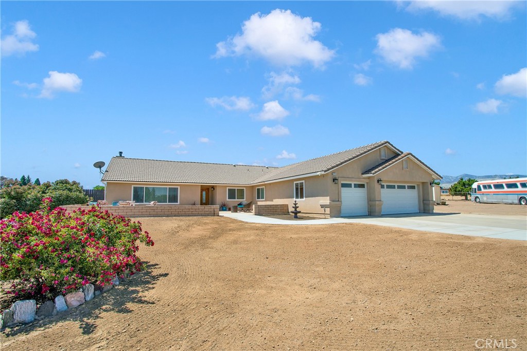 West Oak Hills? It’s called the Highlands of Phelan, a very desirable area. 8 minutes from the 15 FWY, and 10 minutes from major shopping. WOW! Don’t miss this Beautiful move in ready Ranch home, new carpet and paint, it has everything you have been looking for, Paved roads, completely fenced, and cross fenced, Open floor plan 4 bedrooms + (Office or 5th bedroom) 3 bathrooms (one Guest bath, one in main bedroom and one attached to 4th bedroom) it has a Large front room with vaulted ceilings, a castle rock fire place W/ insert to keep you warm on those cold winter nights, it is open to the family dining area, and a remodeled Cooks kitchen, with all the extra’s a 5-burner stove with 2 ovens, microwave. granite counter tops, lots of drawers and pull-out shelves, pantry, and an 8 ft. center island W/ serving bar, Dishwasher. There is a privet backyard outside the sliding glass doors with a nice patio, and large shade tree. There are also solar panels that are paid for. The office has built-in book shelfs, all 3 bathrooms have been remodeled, the Main bedroom is extra-large with a wood burning fireplace, it makes for a nice retreat, attached bath with large oval soaking tub, double sinks, a shower room and a closet large enough to make you think it’s another bedroom. The laundry room is large enough to put an extra freezer and wine cooler. From the laundry room you enter the 4.5 car garage, there is a shop storage area or toy area. In the main yard there is a nut and fruit grove, lots of fruit trees it makes my mouth water, a fenced horse paddock, another fenced area for Tac shed or shed for a shop, shelter for hay, and another shelter that you could turn into horse stalls, or store toys, and there is still lots of room for a Motor home and lots of toys. This is a must-see property.