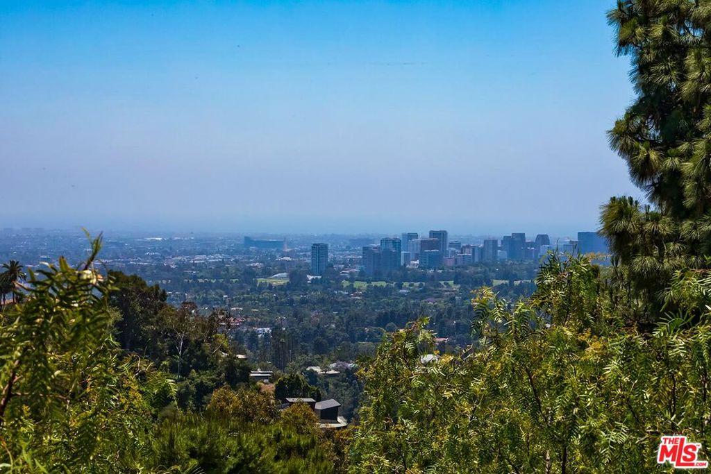 Gothic-Inspired home with Panoramic Views in Prime BHPO. Set high above the city in a peaceful & private enclave of Beverly Hills Post Office, this striking 3 bed + 3.5 bath + bonus room home blends dramatic Gothic-inspired architecture with modern luxury. Designed by a celebrity designer, the residence showcases custom wood detailing & breathtaking 180 views of the city skyline, ocean & canyons from every room. The expansive living room with soaring beamed ceilings is filled with natural light, featuring a stunning stone fireplace, oversized windows framing Downtown LA, & seamless flow into the dining area & out to an entertainer’s dream deck. Spanning almost the entire length of the home, the deck offers unobstructed panoramic views & is ideal indoor/outdoor living. The chef’s kitchen includes high-end stainless-steel appliances, tons of cabinetry, stylish tile flooring, & a bay window with hillside vistas. A convenient door opens directly to the deck perfect for morning coffee or al fresco dining. The primary suite is a true retreat, with a full wall of windows showcasing sweeping city & hill views, a massive walk-in dressing room with custom built-ins, & an additional wall of closets, ideal for the fashion-forward tenant. The spa-like en-suite bath is beautifully renovated, featuring double sinks, intricate tilework, a soaking tub inside the shower, & a bay window overlooking the treetops & skyline. The main level also includes a light-filled 2nd bedroom with built-ins, a fully renovated hall bathroom with skylight, & a chic powder room. Downstairs offers the 3rd bedroom en-suite with updated bathroom, a bonus room for a home office or creative space, a laundry room, & the direct access garage, complete with abundant storage & rubberized flooring, should you want to use it as a home gym. Surrounded by prestigious estate properties, this one-of-a-kind residence offers privacy, incomparable design, & effortless access to the best of Beverly Hills, the Valley, West Hollywood & the Westside.