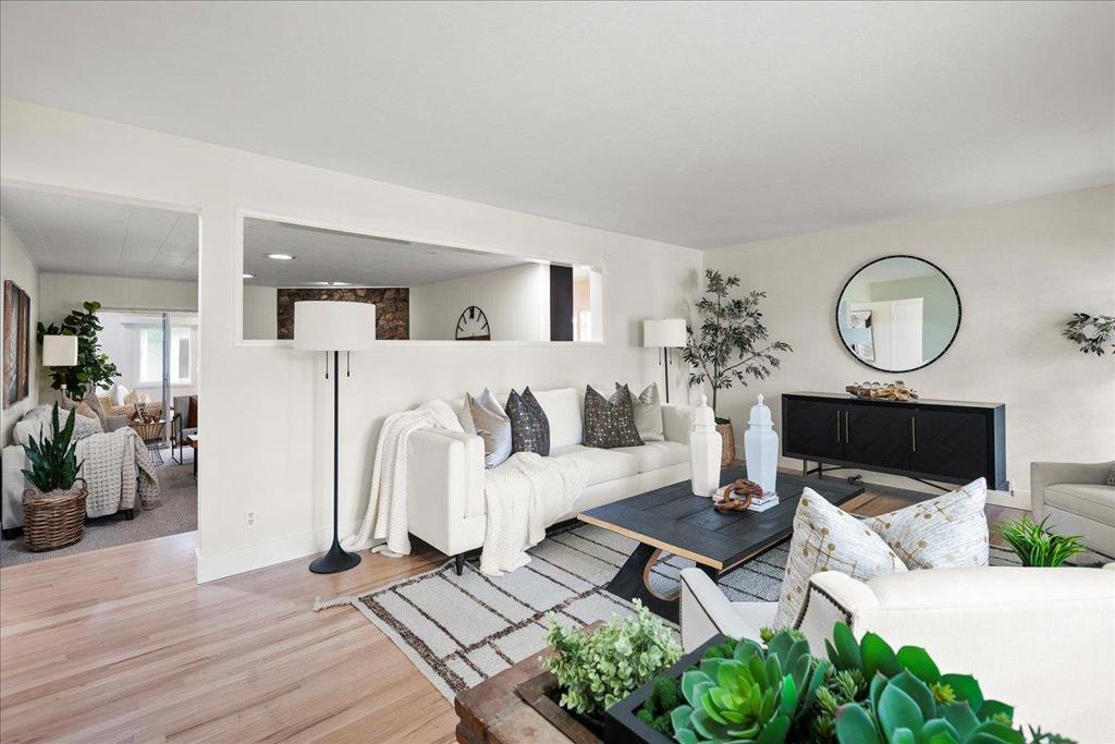 Beautifully refreshed single-story ranch in a quiet Santa Clara neighborhood, just minutes from major tech employers, Santana Row, and Central Park. Formal living room with gleaming hardwood floors and fireplace framed by floor-to-ceiling windows. Updated kitchen with granite counters, designer backsplash, stainless appliances, and custom cabinetry opens to a light-filled dining area. Expansive family room with dramatic rock fireplace and sun tunnels flows to a fully enclosed patio room featuring built-in grill, sink, cabinetry, and rolling European shutters overlooking the sparkling poolideal for year-round entertaining. Primary suite with built-ins, patio access, and spa-inspired bath with curb-less walk-in shower. Two additional bedrooms with hardwood flooring and excellent storage plus a vintage mid-century guest bath. Added versatility with 1BD/1BA ADU, utility/craft area with half bath, and detached 2-car garage with attic storage. Fresh paint, new carpet, lighting, and hardware.