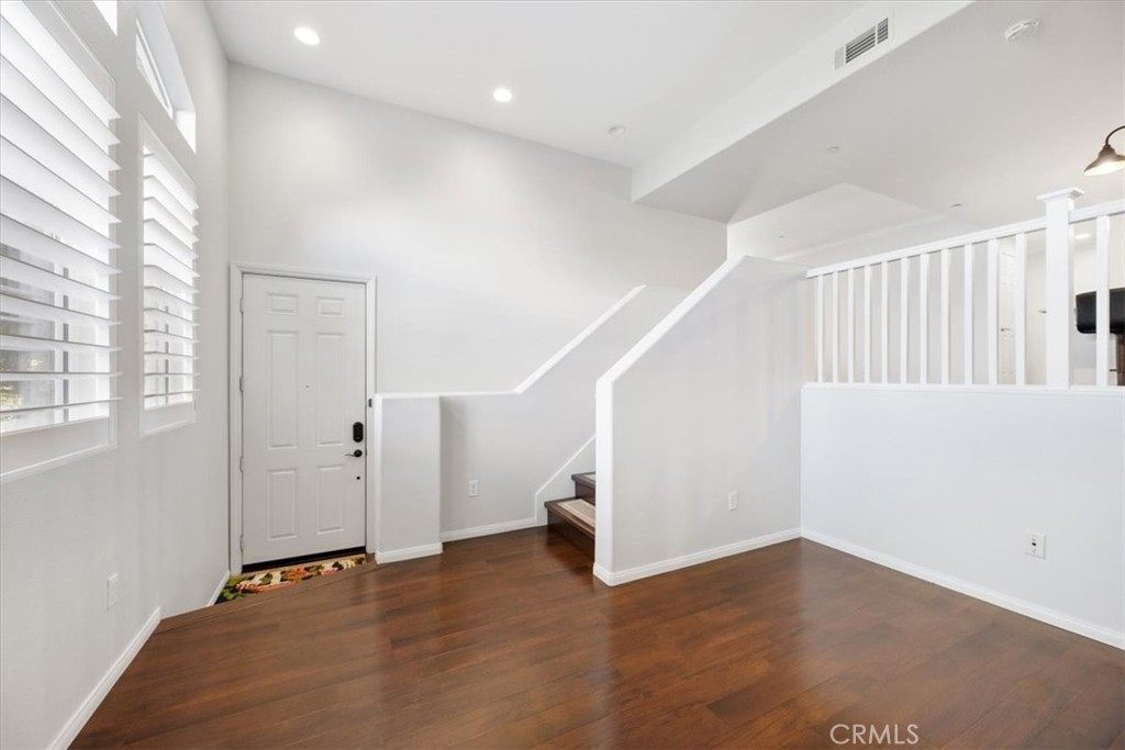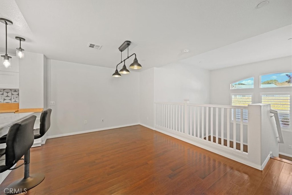 A unique split-level layout places the main living areas, kitchen, dining space, and all bedrooms and bathrooms slightly elevated above the entry and bonus family room, providing all the living space on one level. The home looks out over nearby hills and open space, offering a pleasant sense of privacy and openness. Designed with efficiency in mind, the floor plan maximizes usable space throughout. Extensively updated, the home features a fully remodeled kitchen with cabinetry, updated countertops, modern lighting, and pantry storage. Laminate flooring runs throughout the living areas, complemented by brand-new carpet in the bedrooms. Plantation-style shutters have been installed throughout, and the dining room fixtures have been upgraded. Both bathrooms have been remodeled, including a primary bathroom with dual sinks and new shower. Major appliances are included: refrigerator, washer, dryer, dishwasher, and gas stove. The garage offers 220-volt power. HOA covers landscaping, a gym, and clubhouse.