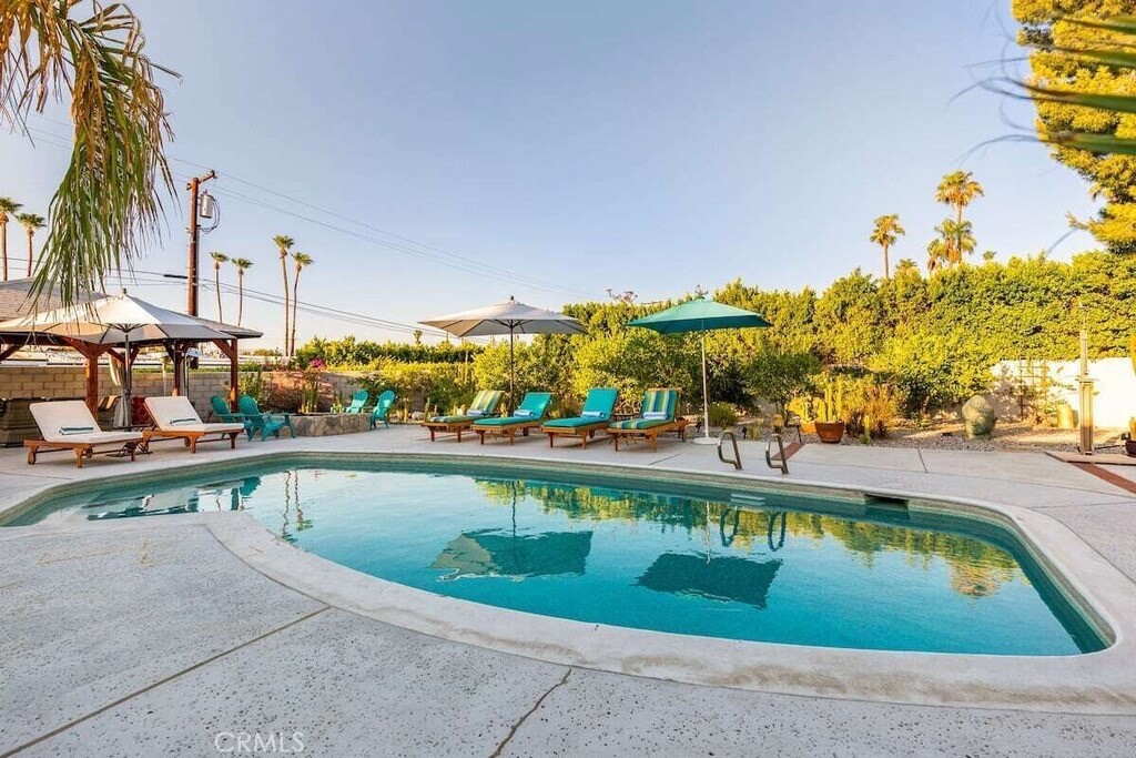 Beautiful Alexander style home in a quiet residential neighborhood, centrally located to downtown Palm Springs and many local shops, restaurants and attractions. It sits on 1/3 acre lot with a very spacious yard with private pool , cactus and citrus garden, BBQ, fire pit, large entertainment space with great mountain views. It is located within 5 min drive to downtown PS, 15 drive to Aerial tramway station, 3 min drive to grocery stores and Walgreens, 6 min drive to Casino, convention center. It features a large open concept living room area with a dark laminate floors and a flowing, modern room and contrast beautifully with a grey comfortable sofa and a love seat, and the kitchen has an open floor plan with breakfast bar and featuring dark cabinetry & contrasting white quartz counter tops & stainless steel appliances. The sliding door from the living room area opens to a very private, large yard with a sparkling blue pool and a garden gazebo great for relaxation and outdoor dining. House can be delivered furnished or unfurnished and the $3900/mo is for the period starting on February 1st, 2026, after this date price to be negotiable.