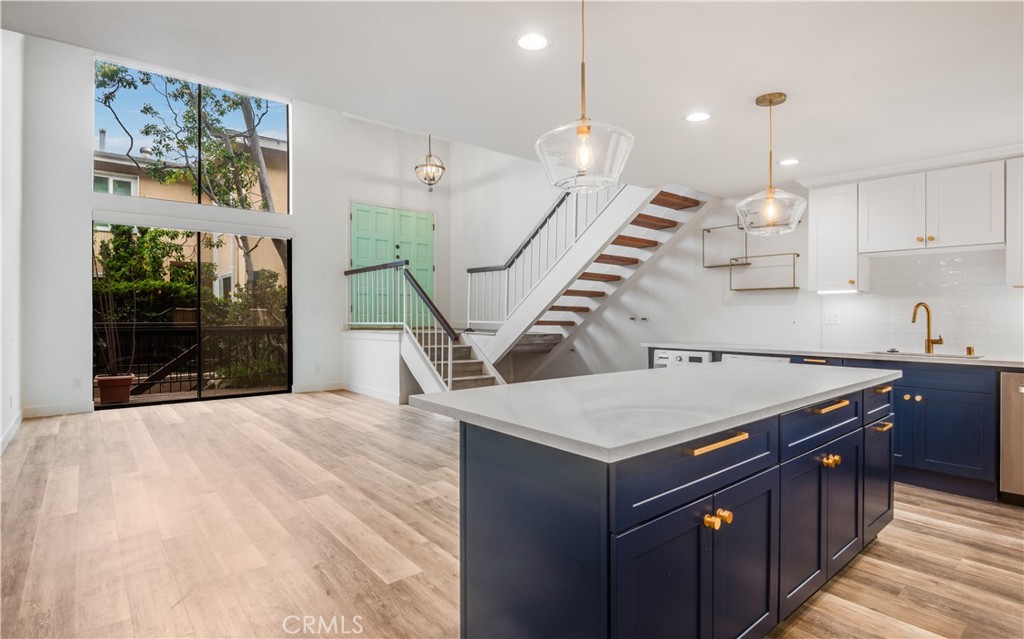 Located in the heart of Brentwood, this updated 2-bedroom plus loft, 3-bath townhome offers a rare blend of space, privacy, and indoor-outdoor living within a small, well-maintained nine-unit building. Upon entry, the home opens to a bright and airy open-concept living area filled with natural light and designed for seamless indoor-outdoor living. Sliding glass doors connect the living space directly to a private balcony, creating an easy flow between inside and outside. The main level continues into the kitchen and dining area, featuring a center island, European-style cabinetry, and stainless-steel appliances. Upstairs, a separate family room provides additional living space with a fireplace and built-in shelving, along with a secondary bedroom and bathroom. The top level features a high-ceiling primary suite with a private balcony, generous closet space, and a connected loft ideal for a home office or flexible use area. A standout feature of the home is the large Santa Monica Mountain view balcony off master suit, offering open sky and hillside outlooks. Additional highlights include two side-by-side parking spaces in a controlled-access gated garage and central heating and air conditioning. Water and trash services are included in the rent. Conveniently located near San Vicente Boulevard, the home is close to restaurants, cafes, shops, and daily conveniences including Whole Foods Market.