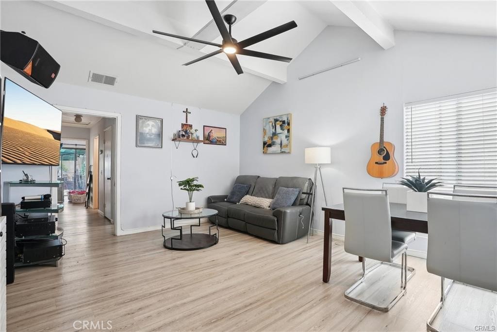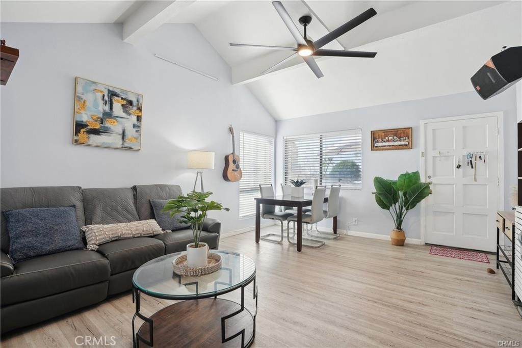 Welcome to this light and bright upper-level condo offering 2 bedrooms, 1 bathroom, and 924 sq. ft. of comfortable living space. Featuring beautiful wood floors throughout and the privacy of no unit below, the open-concept living and dining area is ideal for both relaxing and entertaining. Step outside to your private front patio, perfect for outdoor lounging or morning coffee. Additional highlights include an in-unit laundry area for convenience and access to community amenities such as a sparkling pool and spa. Land Lease $325 and HOA $375