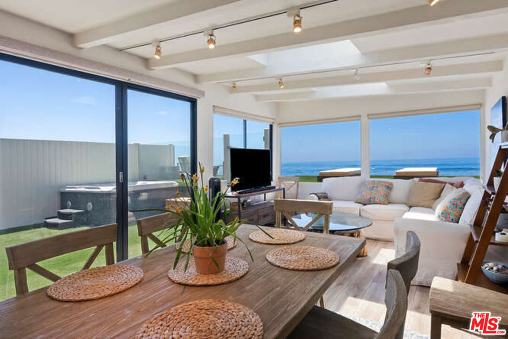 The Colony Malibu’s Premier Guard-Gated Enclave for Over 90 Years. Even within the prestigious Colony, location is everything and this warm, inviting beach home is ideally situated on the highly desirable sandy south end of the beach, directly in front of the renowned ‘Old Joe’s’ surf break. Here, a natural reef helps preserve the sand, creating an exceptional setting for a true beachfront lifestyle. Tucked away from Pacific Coast Highway, this is the perfect retreat for enjoying the surf and sand with family and friends. The main residence features a spacious beachfront deck and is seamlessly connected to a charming tea house directly over the water. Sliding glass doors from both the living room and tea house open to a private, covered patio complete with a dining area, built-in BBQ, and spa ideal for casual coastal entertaining. The updated open-concept kitchen offers ocean views, butcher block countertops, and a center island, flowing easily into the dining area and tea house. A beautiful stacked stone fireplace in the living room provides cozy comfort on cooler coastal days.The primary suite opens onto its own private oceanfront deck, offering breathtaking views of the surf and the iconic ‘Old Joe’s’ rock formation. The main home includes two additional bedrooms and bathrooms.Perfect for visiting friends and extended stays, a fully self-contained guest apartment is located above the garage, featuring a full kitchen and bathroom. Additionally, a separate bedroom and bathroom adjacent to the garage offers flexible use as staff quarters or a convenient beach changing room.Controlled pedestrian gates at both ends of The Colony offer easy access to Malibu’s Cross Creek and Colony Plaza, making it simple to enjoy premier shopping, dining, and everyday conveniences without ever needing to drive. Buyer to cooperate with Seller’s 1031 Exchange.