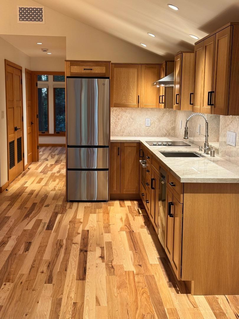 FOR LEASE…This beautiful, newly constructed, 1 bedroom / 1 bath attached ADU (accessory dwelling unit) was both architecturally designed and custom built in 2024. Flooded with sunlight from multiple skylights and a folding wall of glass this unit features a spacious open floorpan with a combined kitchen, living and dining area. Beautifully finished, the apartment boasts modern, trend setting finishes including warm toned hard wood floors, high end light oak cabinetry, and neutral color stone kitchen counter. There is a suite of stainless appliances, including fridge, dishwasher, combo microwave / oven, and washer/dryer, as well as, an electric cooktop High ceilings with skylights bathe the entire apartment in light. The bathroom features radiant heated floors, a curb-less walk-in shower with heated shower bench and large format neutral colored tile. The bedroom overlooks the private back yard and wooded natural surroundings and is perfect for either a Queen or King size bed. Both electric heat and AC along with an EV auto charging station are a few of the additional amenities. This property is an easy commute to 280, San Francisco, the peninsula and Silicon Valley, as well as, hiking and biking trails, coastside beaches and local restaurants. Non smokers and NO PETS PLEASE!